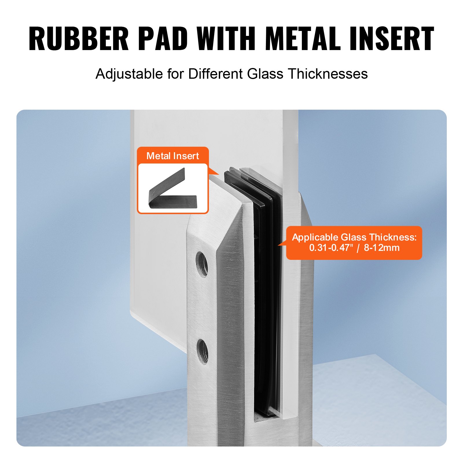 High Compatibility: The glass bracket features adjustable metal and rubber pads, suitable for glass thicknesses of 0.31-0.47". It can be adjusted to your needs and securely fix the glass without drilling holes in the glass panels.