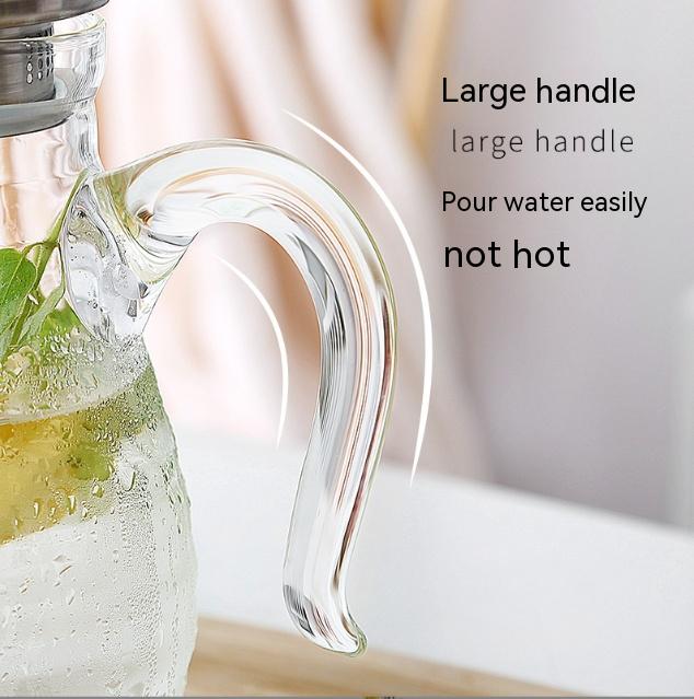 Wide and thick handle, easy to hold when pouring water, comfortable, not hot, not broken.
