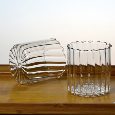 Glass Cup With Corrugated Cup Transparent Glass Tea Set