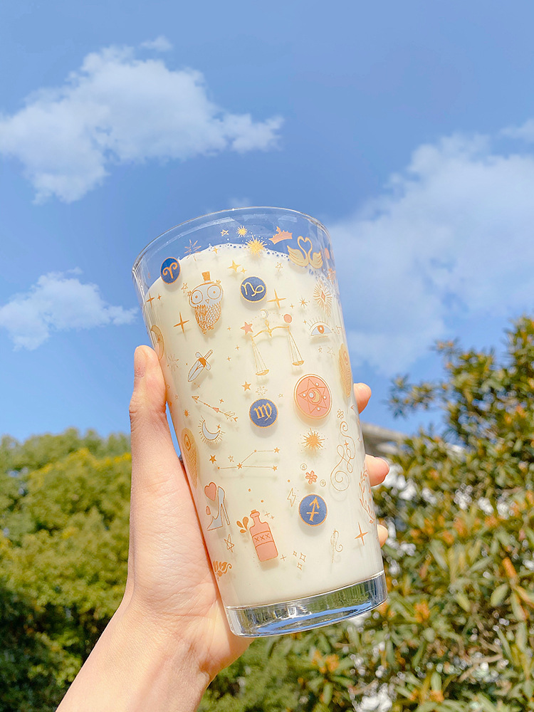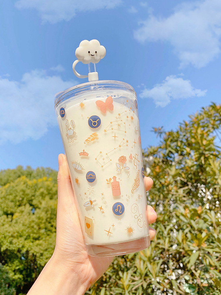 Constellation set includes: dustproof lid + glass straw + cloud straw plug