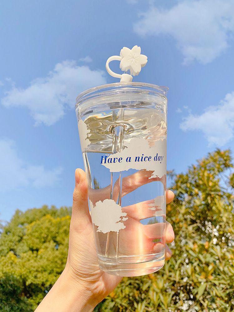 Cup Lid and Straw Set Contains: Dustproof Cup Lid + Glass Straw + Flower Straw Stopper + Silicone Cup Cover
