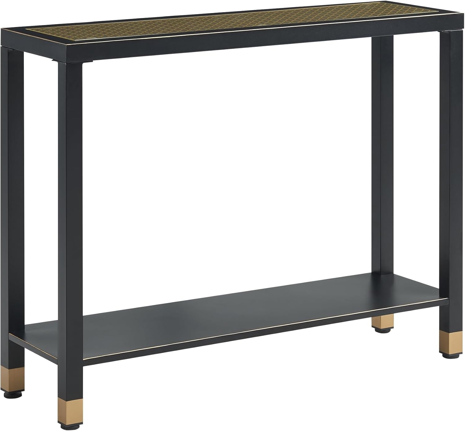 Product Name:Glass Entryway Table, 2-Tier Entry Way Console Entrance Table, 41"L Narrow Sofa Table with Shelves, Ideal for Hallway, Entryway, Living Room, Foyer, Corridor, and Office (Gold & Black)