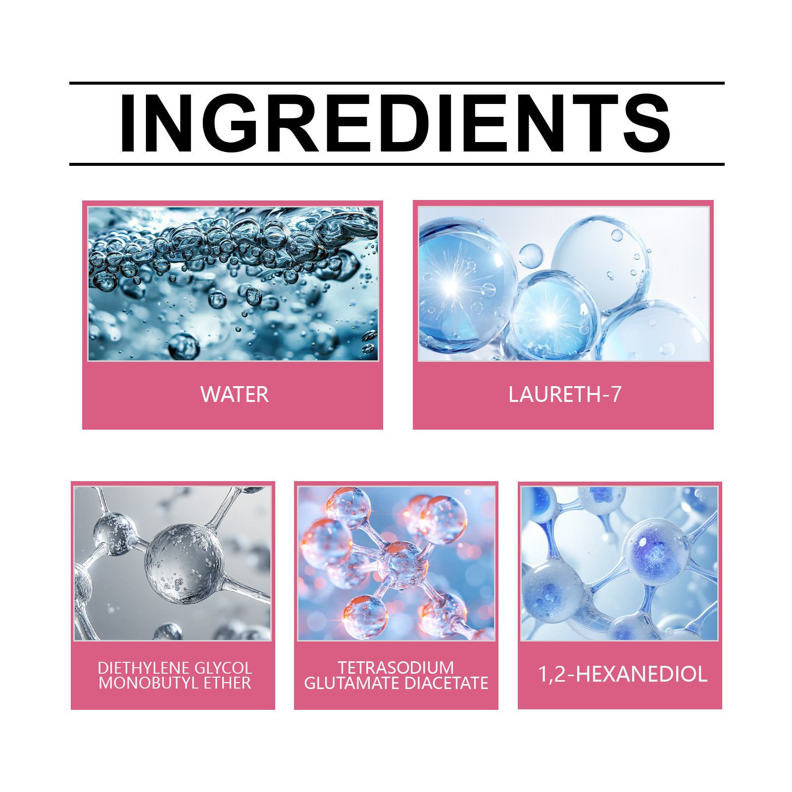 Ingredients: water, fatty alcohol polyoxyethylene ether, diethylene glycol butyl ether, tetrasodium glutamate diacetate, 1,2- hexanediol.