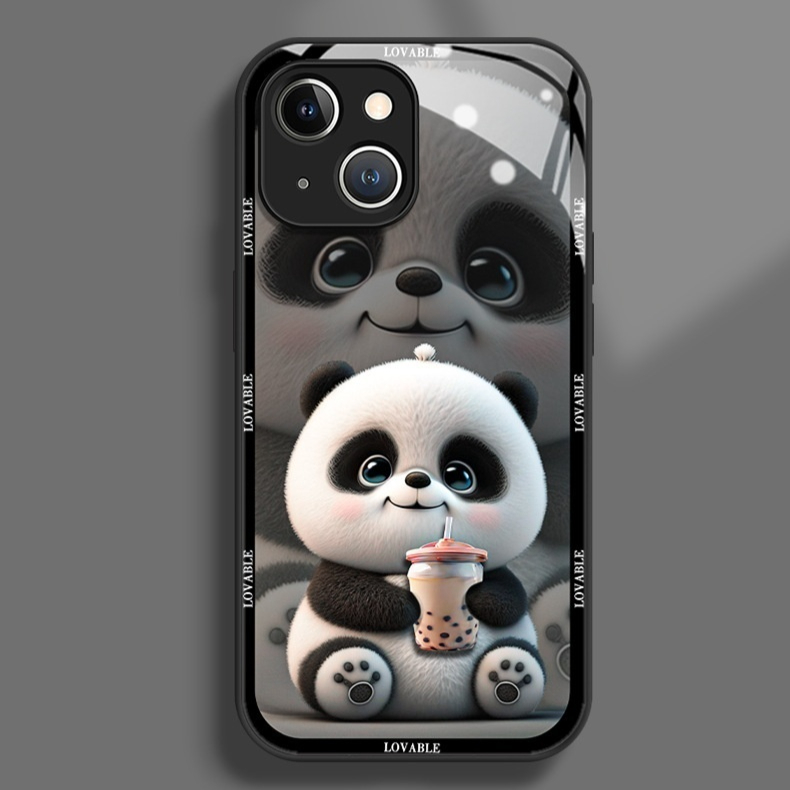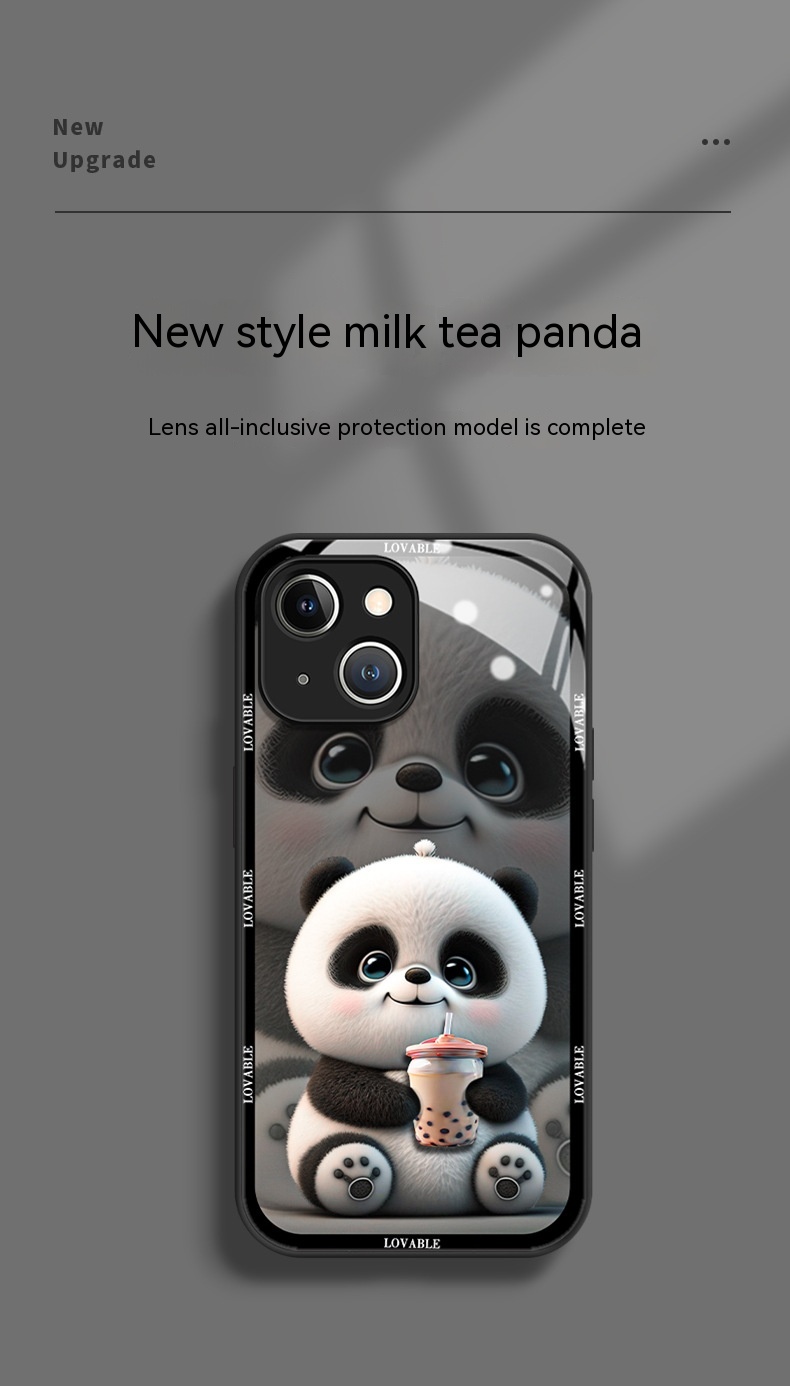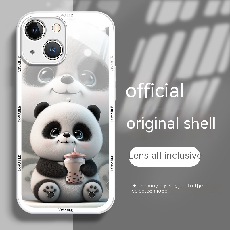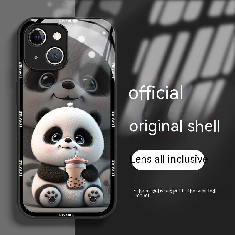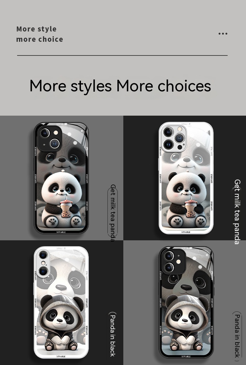 Color: black glass shell-milk tea Panda, black glass shell-sweater panda, white glass shell-milk tea Panda, white glass shell-sweater panda