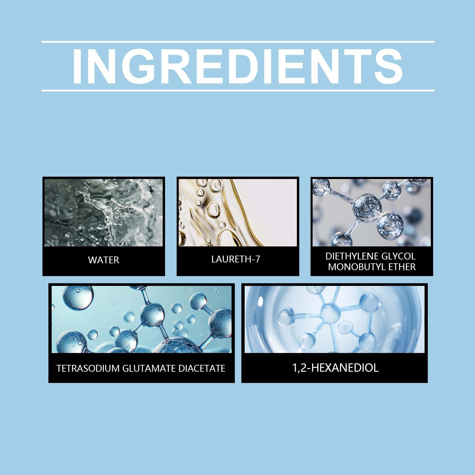 Ingredients: water, fatty alcohol polyoxyethylene ether, diethylene glycol butyl ether, tetrasodium glutamate diacetate, 1,2- hexanediol.