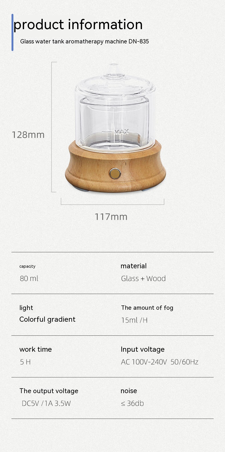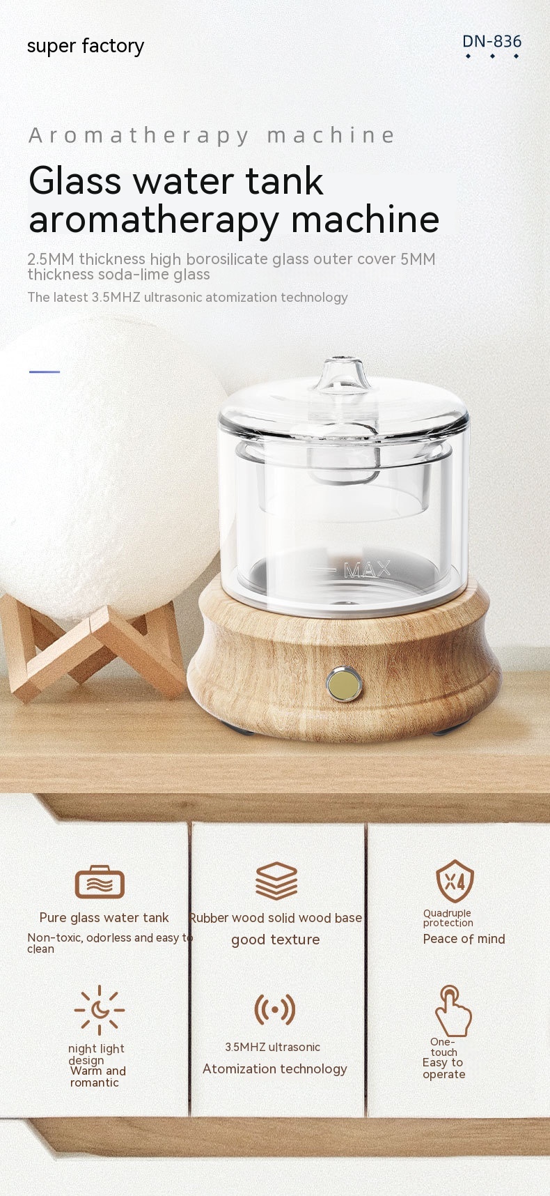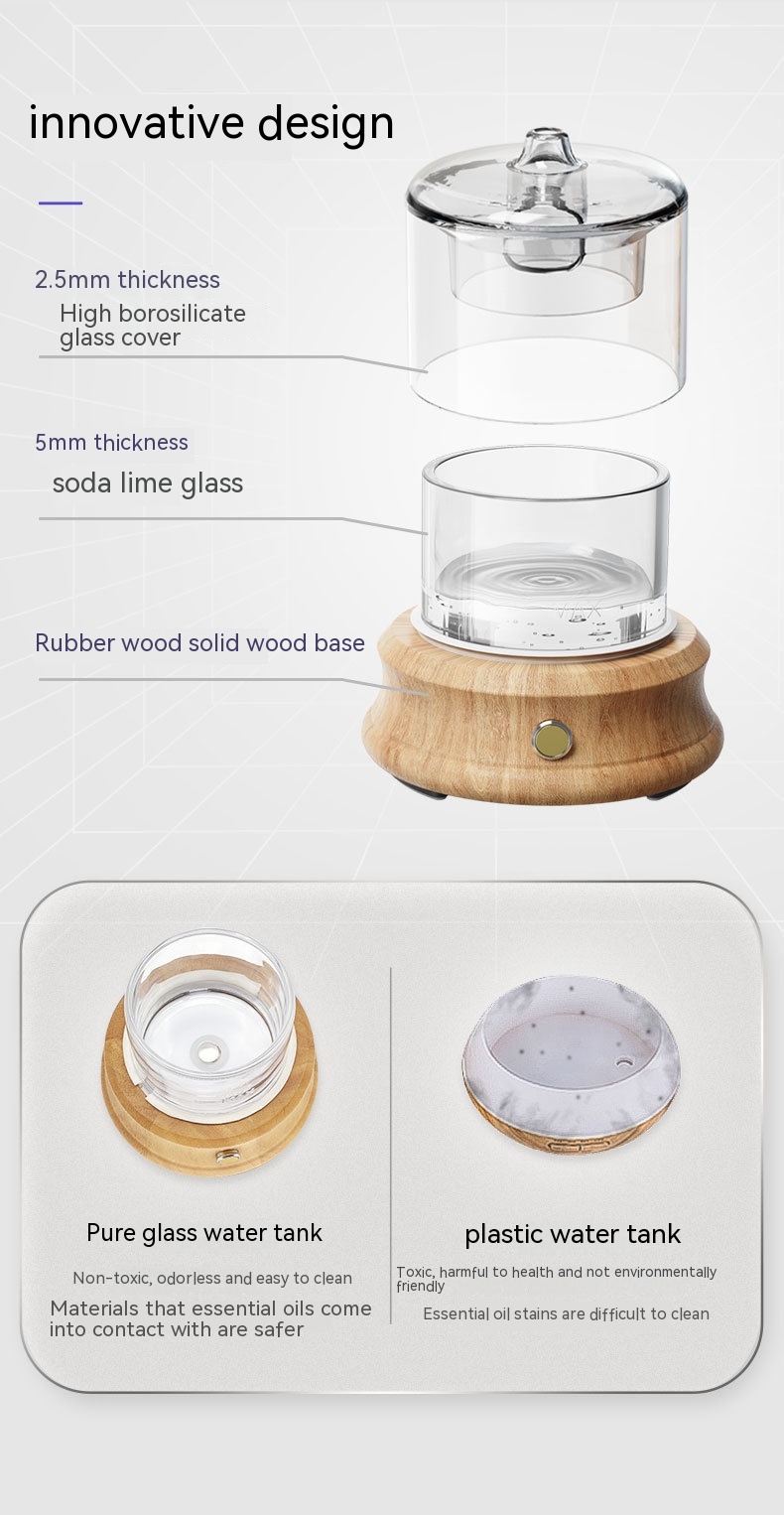 Appearance: columnar diffusion diffuser battery waterless essential oil waterless car aroma diffuser glass ultrasonic humidifier air purifier APP