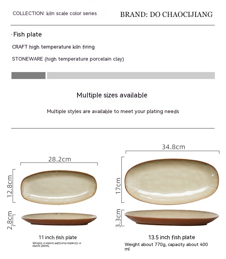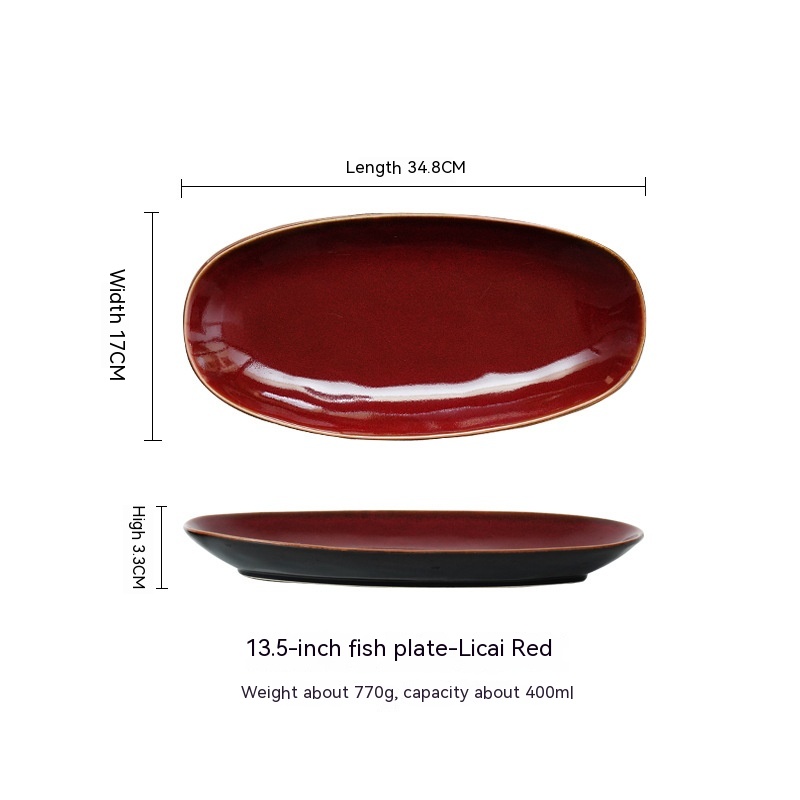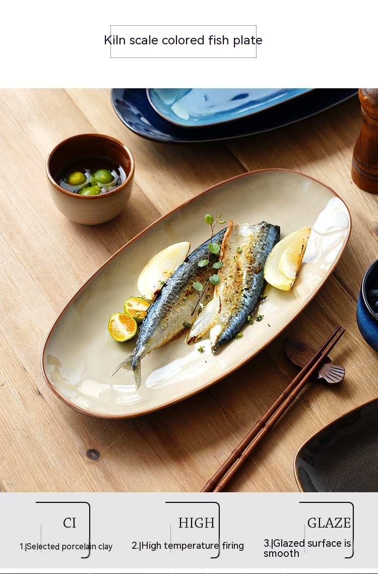 Color: 11-inch fish dish-cat eye blue, 11-inch fish dish-Bangkok Brown, 11-inch fish dish-scale color gray, 11-inch fish dish-scale color red, 11-inch fish dish-scale bright green, 13-inch fish dish-Cat's Eye Blue, 13-inch fish dish-Bangkok Brown, 13-inch fish dish-scale color gray, 13-inch fish dish-scale color red, 13-inch fish dish-scale bright green