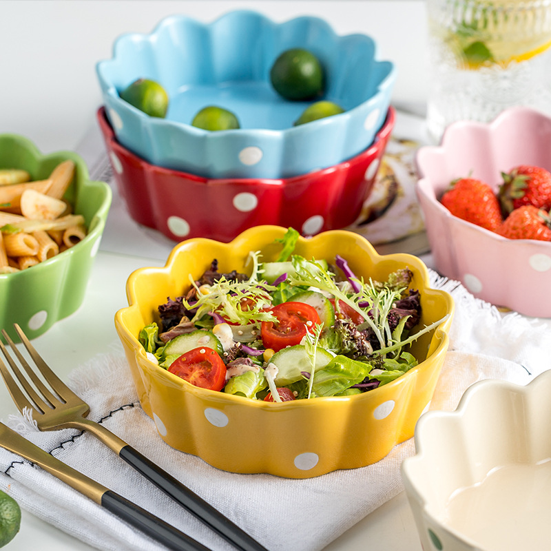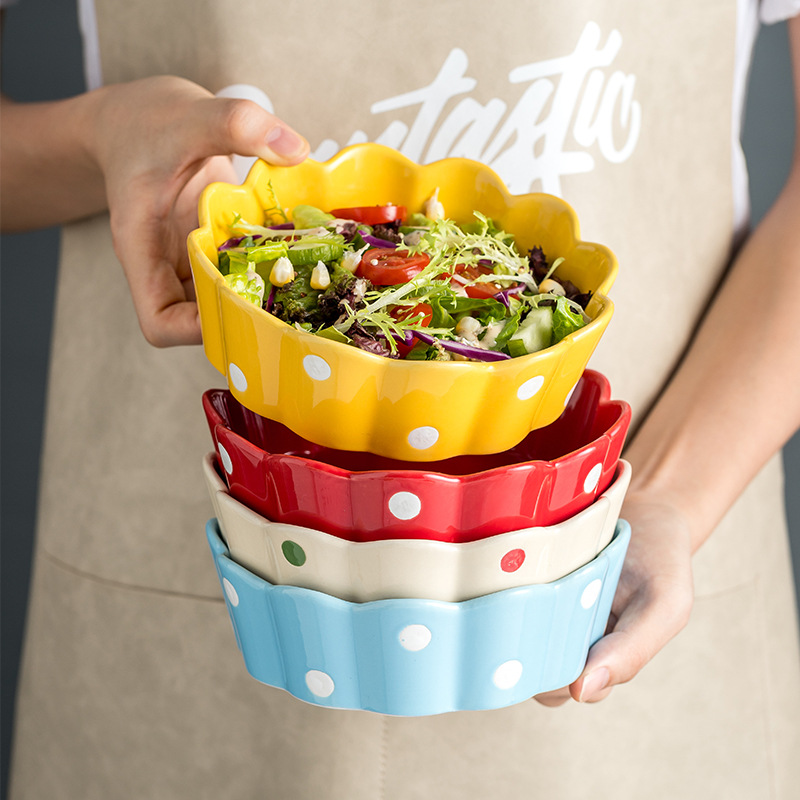 Color: Beige Polka-dot Salad bowl, green Polka-dot salad bowl, blue Polka-dot salad bowl, yellow Polka-dot salad bowl, red Polka-dot salad bowl, pink Polka-dot salad bowl