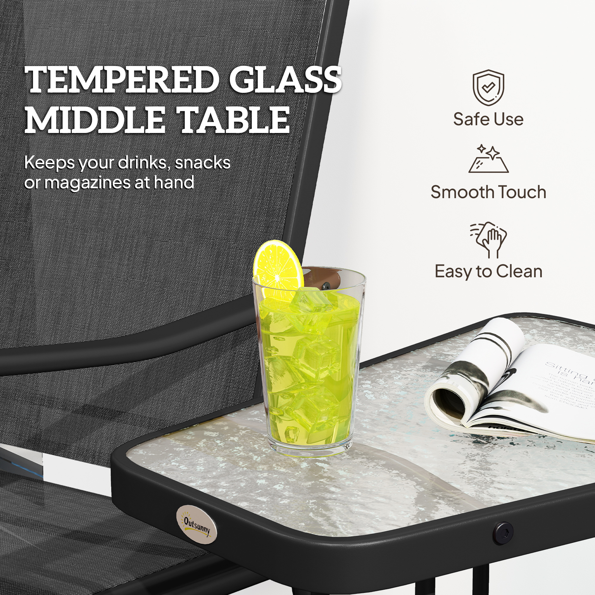 Enjoy relaxation time with a friend thanks to this jack and jill seat. The steel frame means a strong, supportive structure - crafted in a smooth, individual gliding design to allow you to drift away peacefully at your own pace. The middle glass table provides a handy holding spot for both of you. So, whether it's for relaxing with a friend or by yourself, this tete a tete seat is great for taking a well deserved rest.