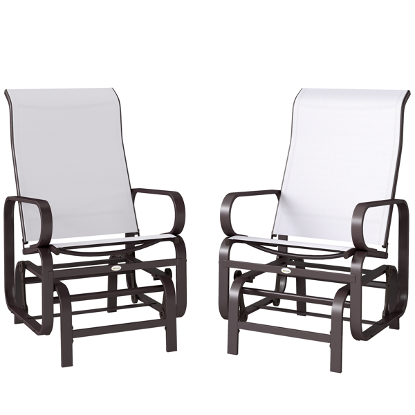 Features: - Two patio gliders offering a classic function mixed with modern design - 28-inch high back with ergonomic head support - Weather-resistant mesh fabric and powder-coated steel combine for lasting appeal - Smooth, quiet and cozy glider mechanism - Great for outdoor spaces like backyards, patios, gardens, and porches - Assembly required Specification: - Color: Brown Frame, Beige Fabric - Materials: Metal, Breathable Mesh - Overall Dimensions: 23.5" W x 30.75" D x 41.25" H - Seat to Floor: 17.25" H - Seat Dimensions: 19.75" W x 16.75" D - Net Weight: 46 lbs. - Max. Load: 352 lbs.