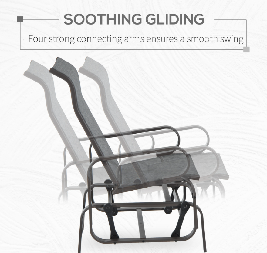 Gliding Rocking Chair, Patio Swinging Chair With Smooth Rocking Arms And Lightweight Construction For Patio Backyard, Gray