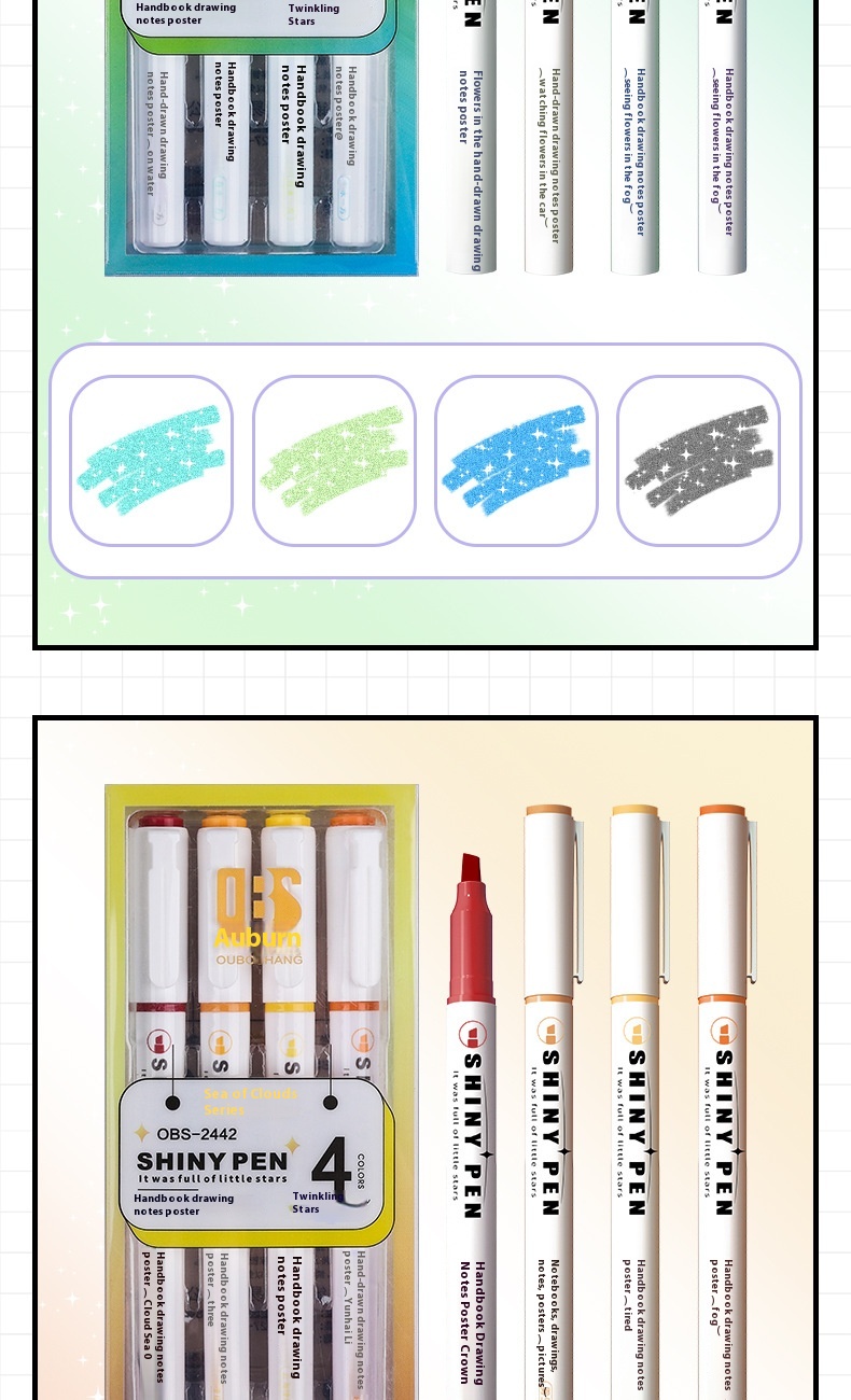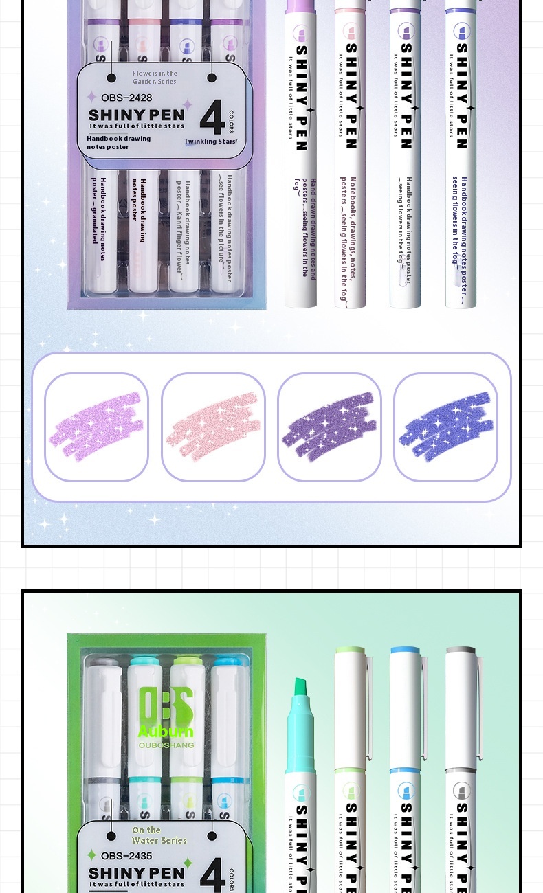 Pen refill color: Newly upgraded glitter dosage - taro paste puff, newly upgraded glitter dosage - mung bean smoothie, newly upgraded glitter dosage - peach blossom puff, looking at flowers in the mist, shrouded in clouds, on the side of the water