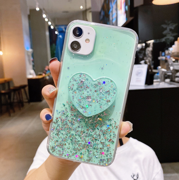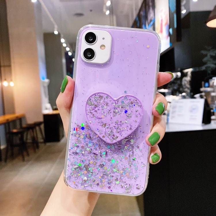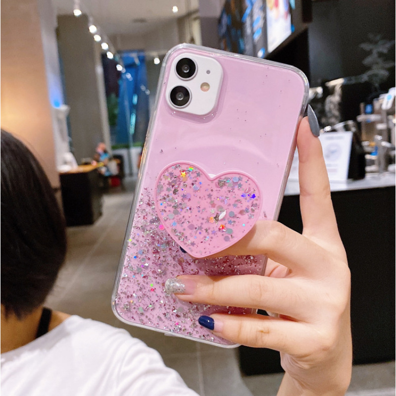 Glitter Silver Foil Epoxy Soft Glue Lanyard Stand Phone Case