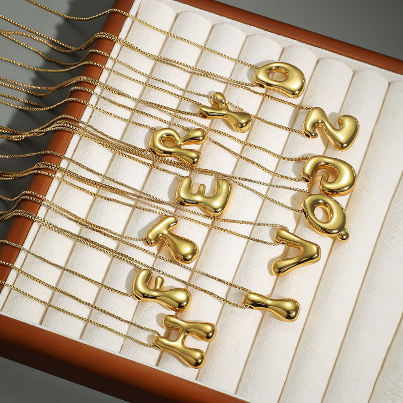 Glossy Bubble Balloon Letter Pendant Necklace