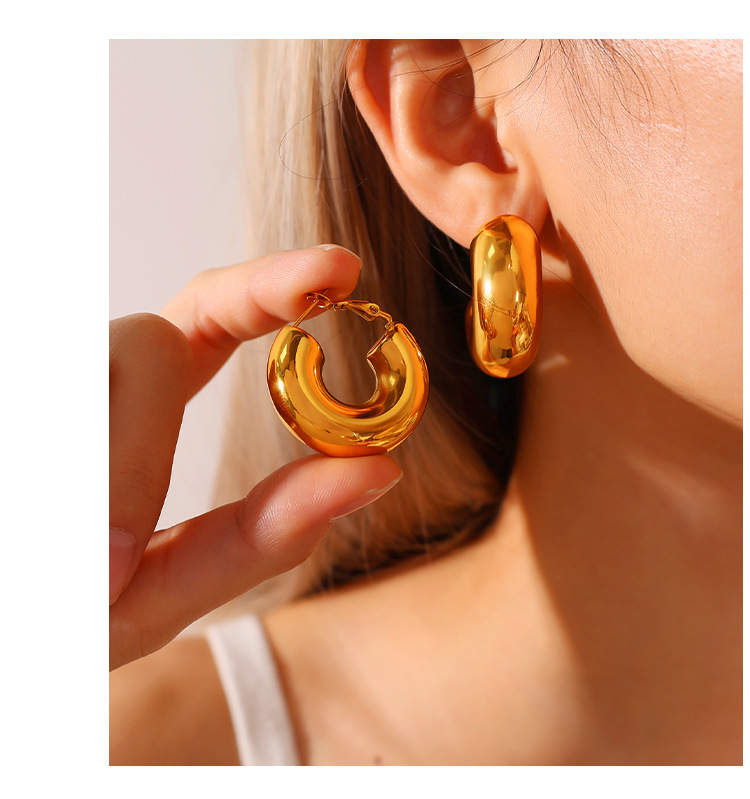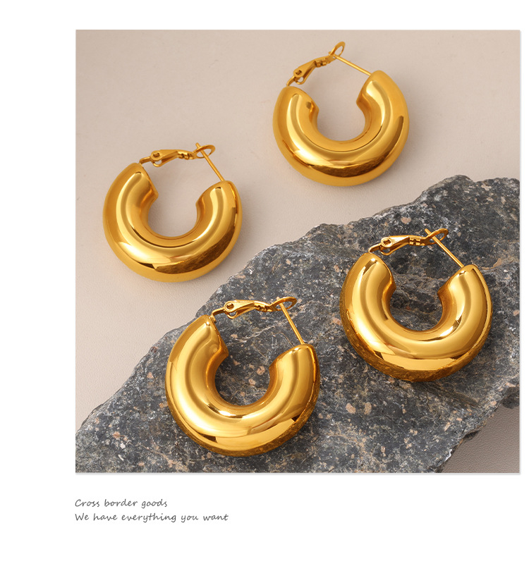 Glossy Metal Semi-Circle Hoop Earrings, Minimalist Geometric Commute Ear Jewelry