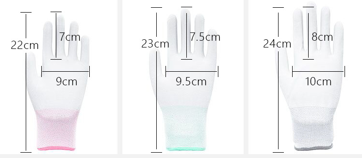 Material: nylon knitted palm PU dipped