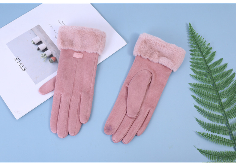 Manufacturers direct sales gloves for women autumn and winter warm suede plus plush thickened touch screen students cycling running outdoors