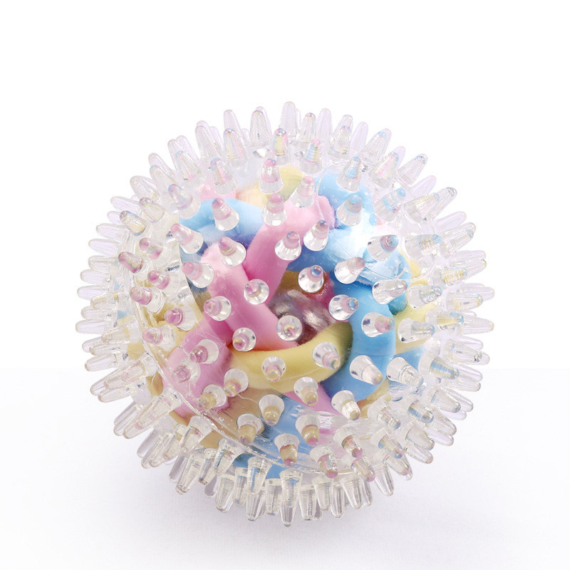 Specifications: Spiny colorful woven luminous ball, two-in-one spiny tennis, two-in-one spiny basketball, two-in-one spiny football, two-in-one spiny ball with one blue net, two-in-one spiny ball with blue Net colorful one each, two in one spiny logo tennis