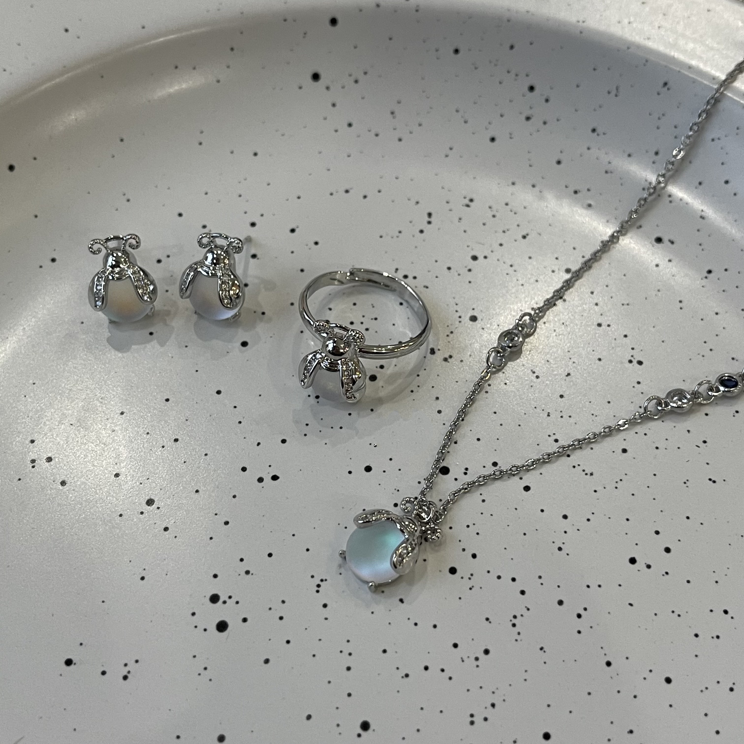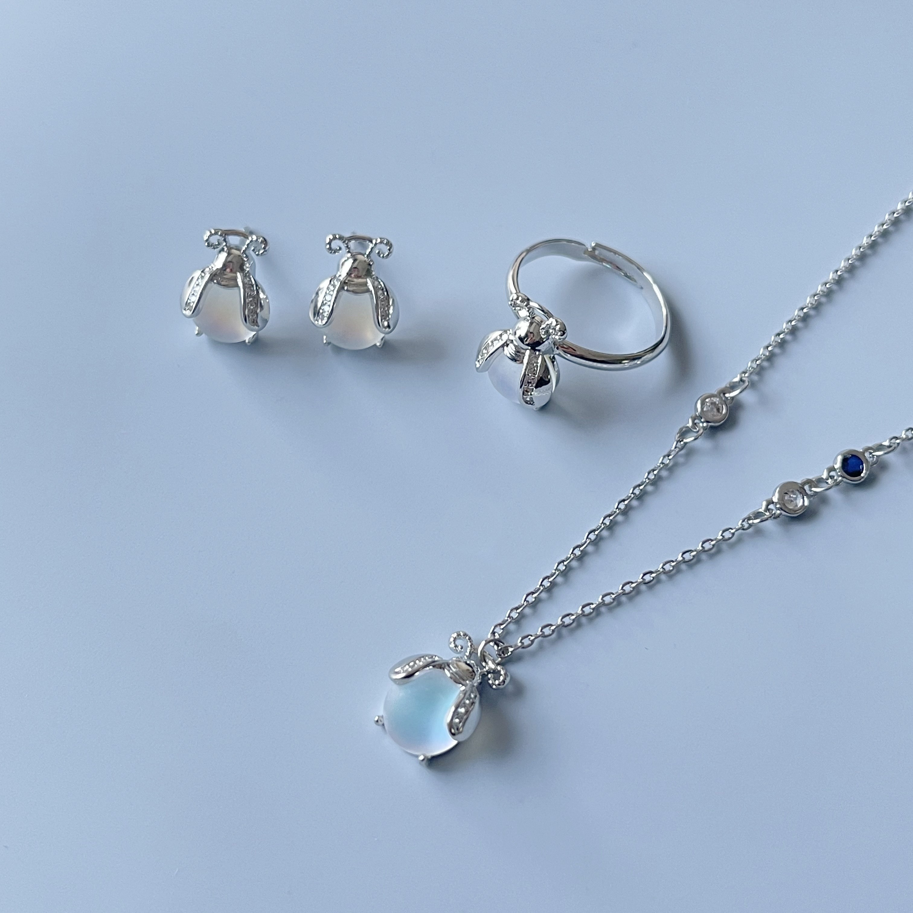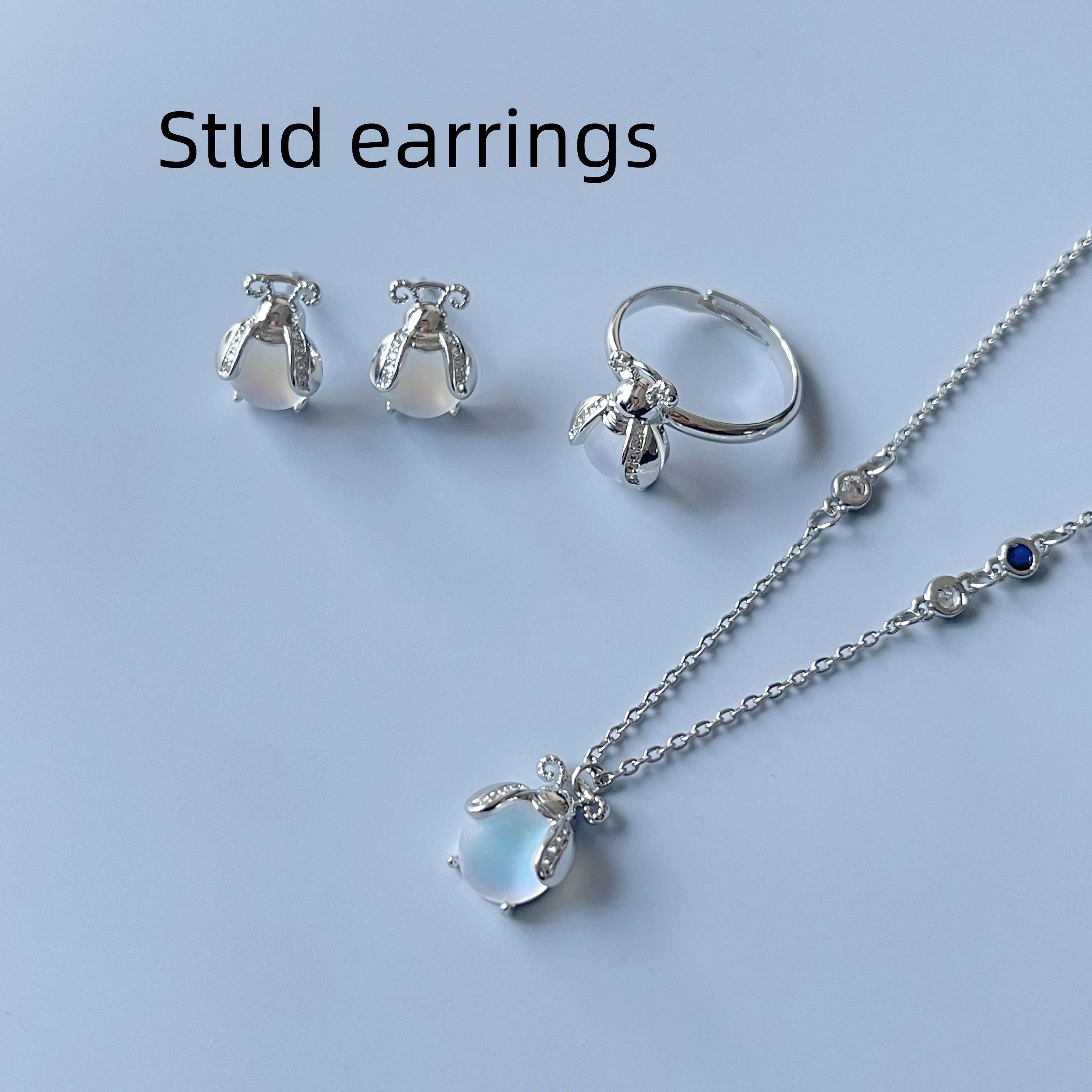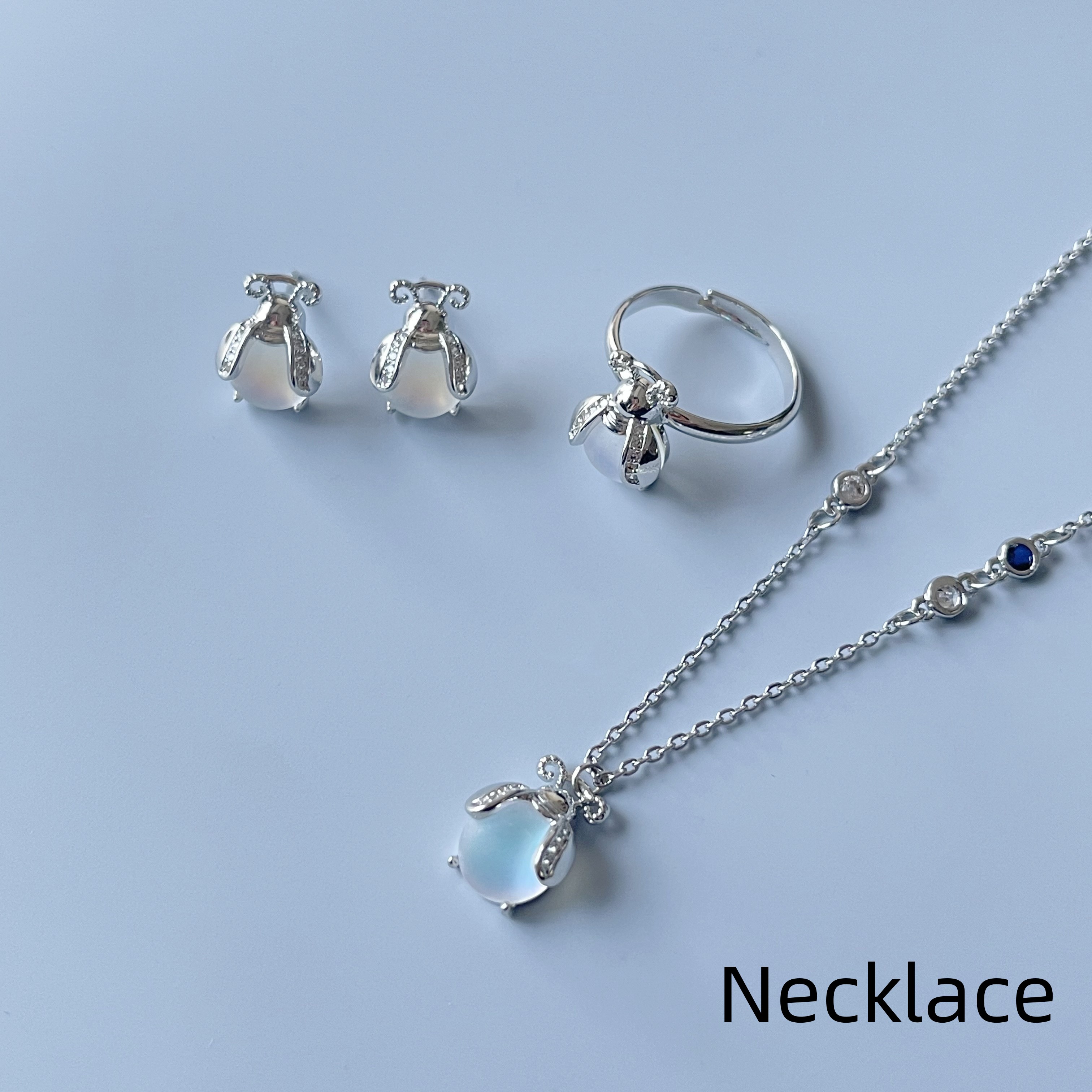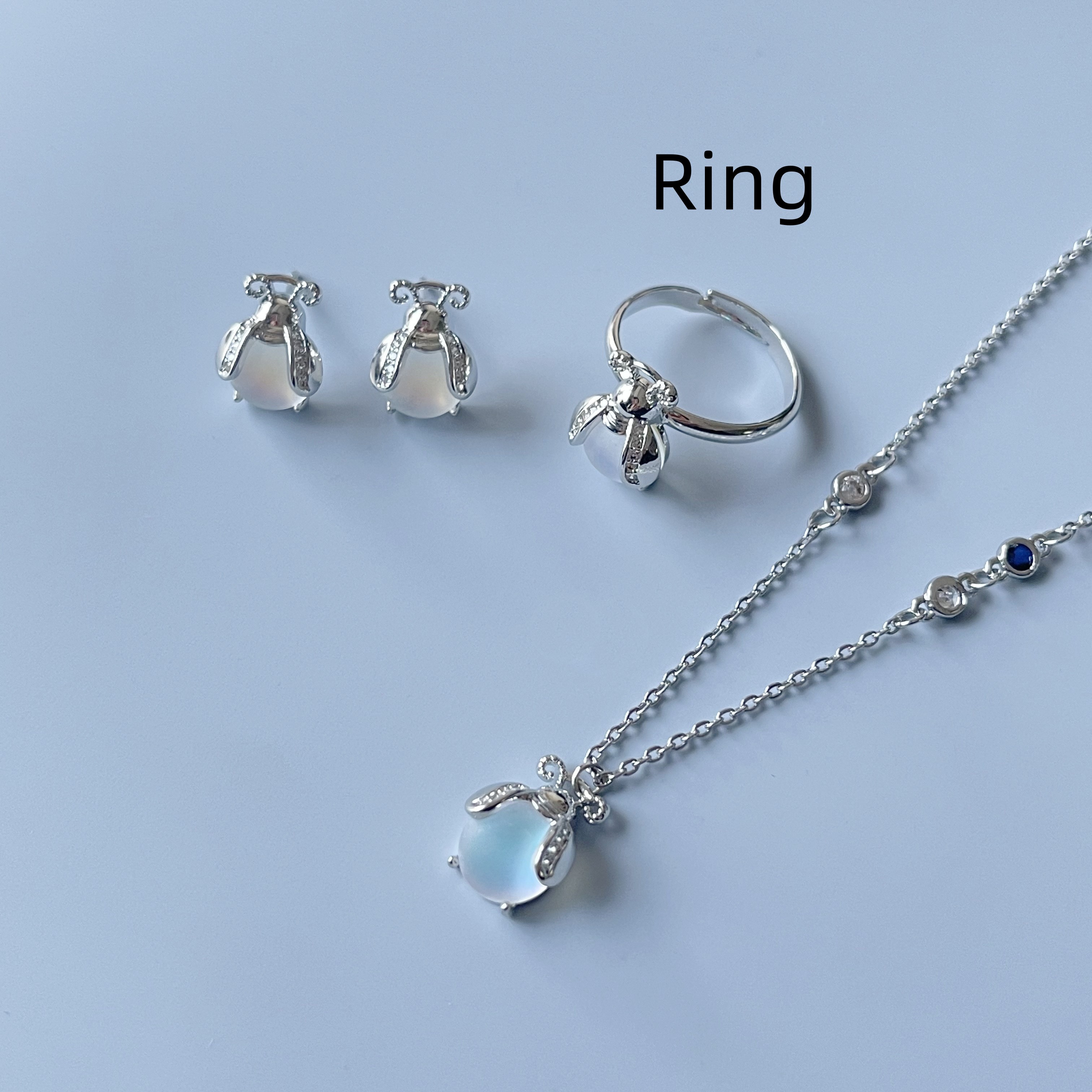 Product information :Color: earrings, a pair of rings, a necklace and a necklaceMaterial: moonstonePacking list:Necklace *1/Earring *2/ Ring *1