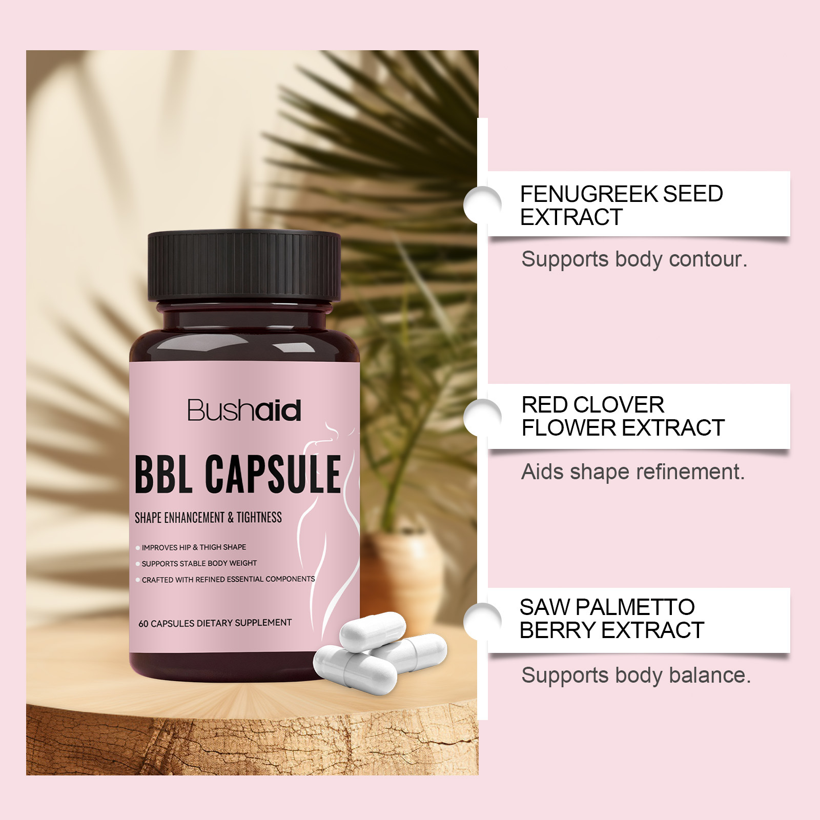 Ingredients: Trigonella foenum-graecum, Trifolium pratense, Serenoa repens, Dioscorea villosa, Angelica sinensis, L- tyrosine.