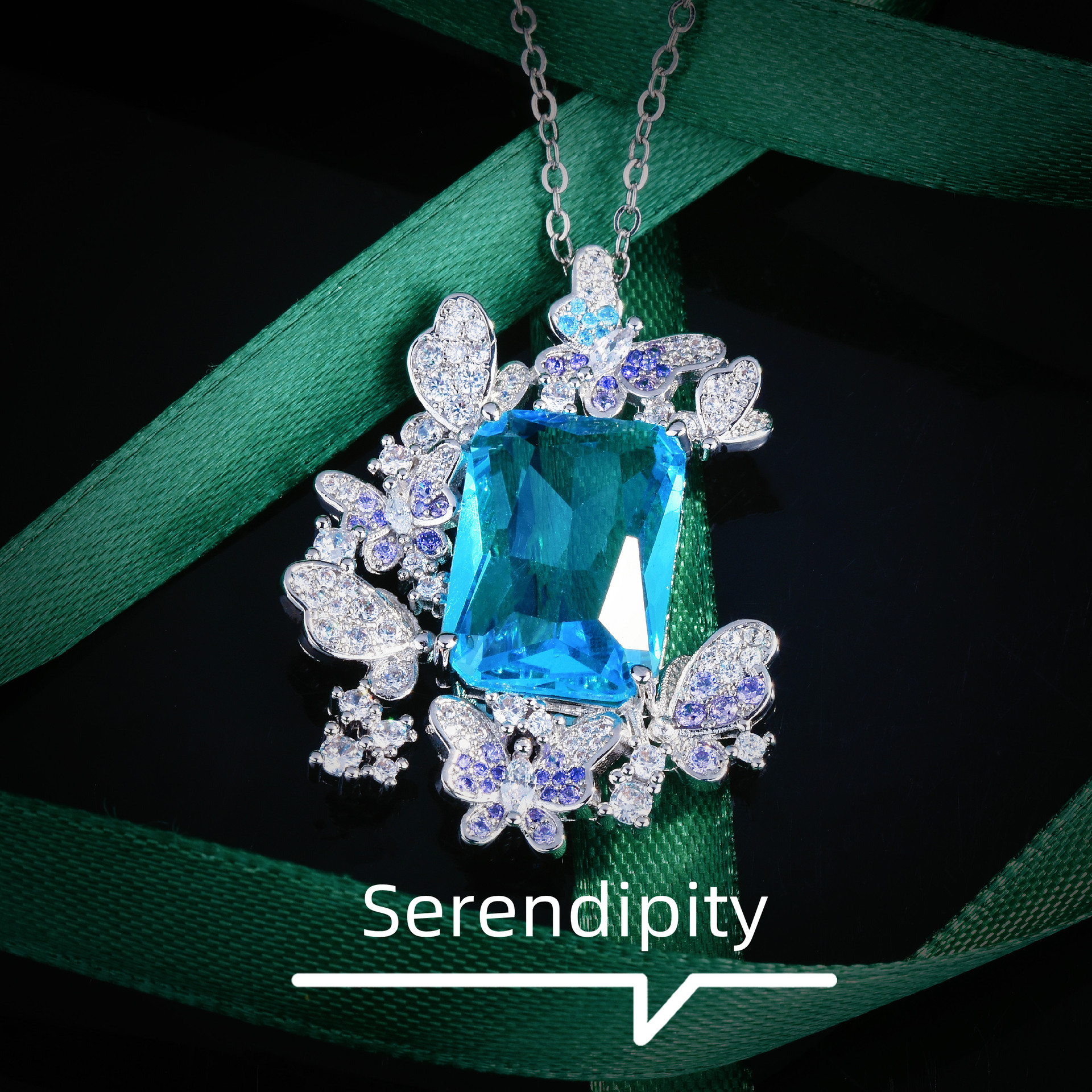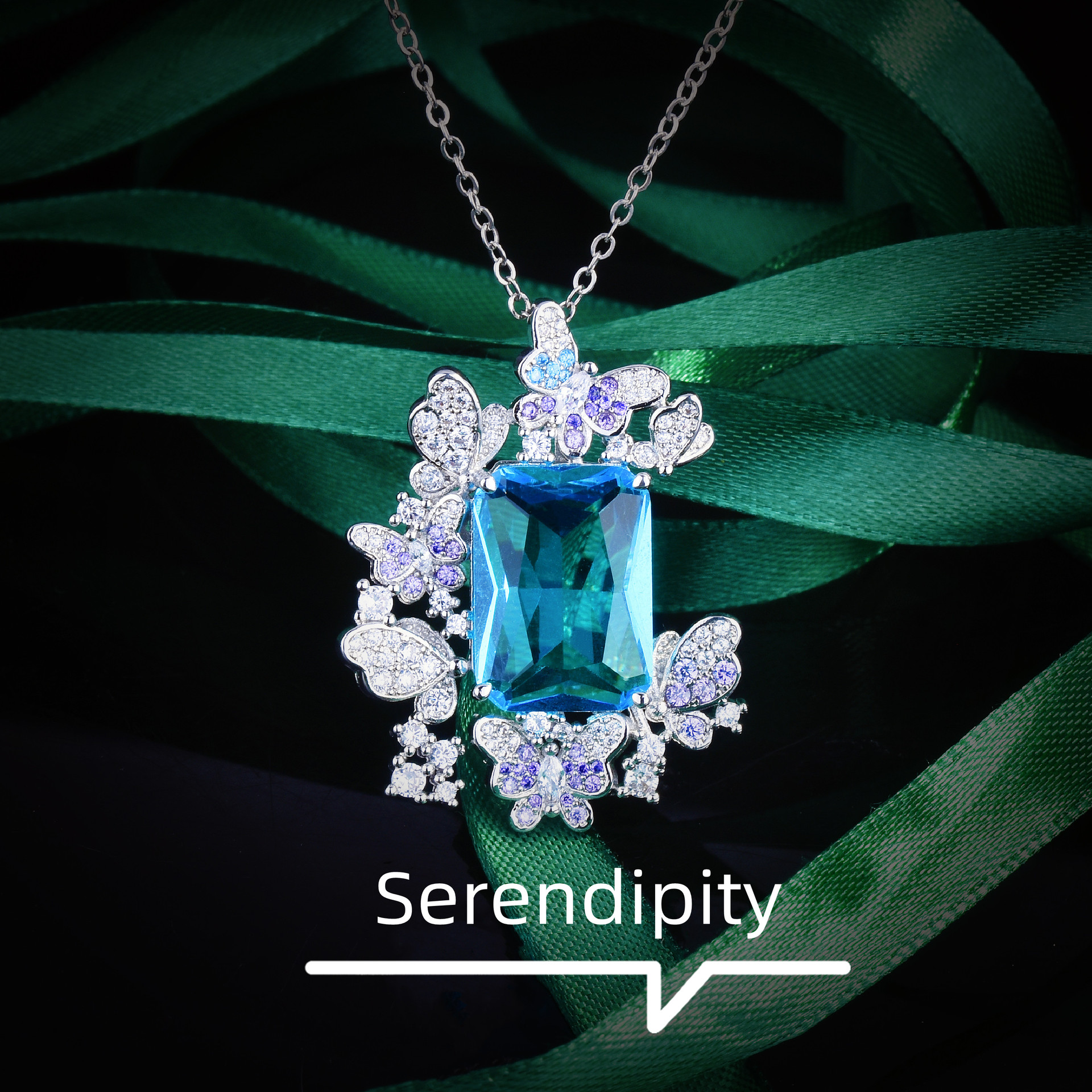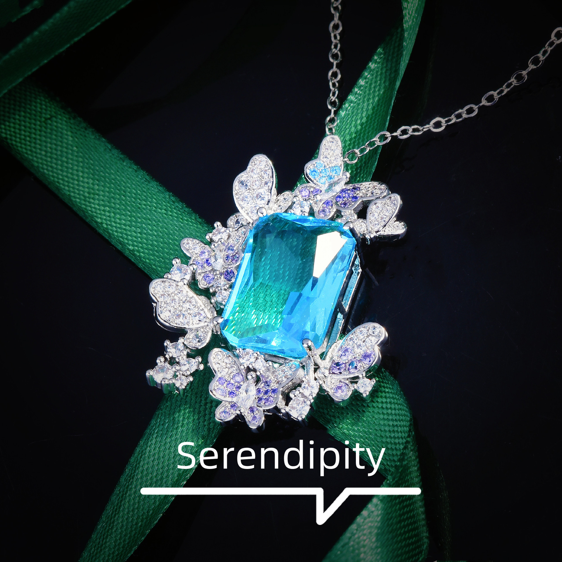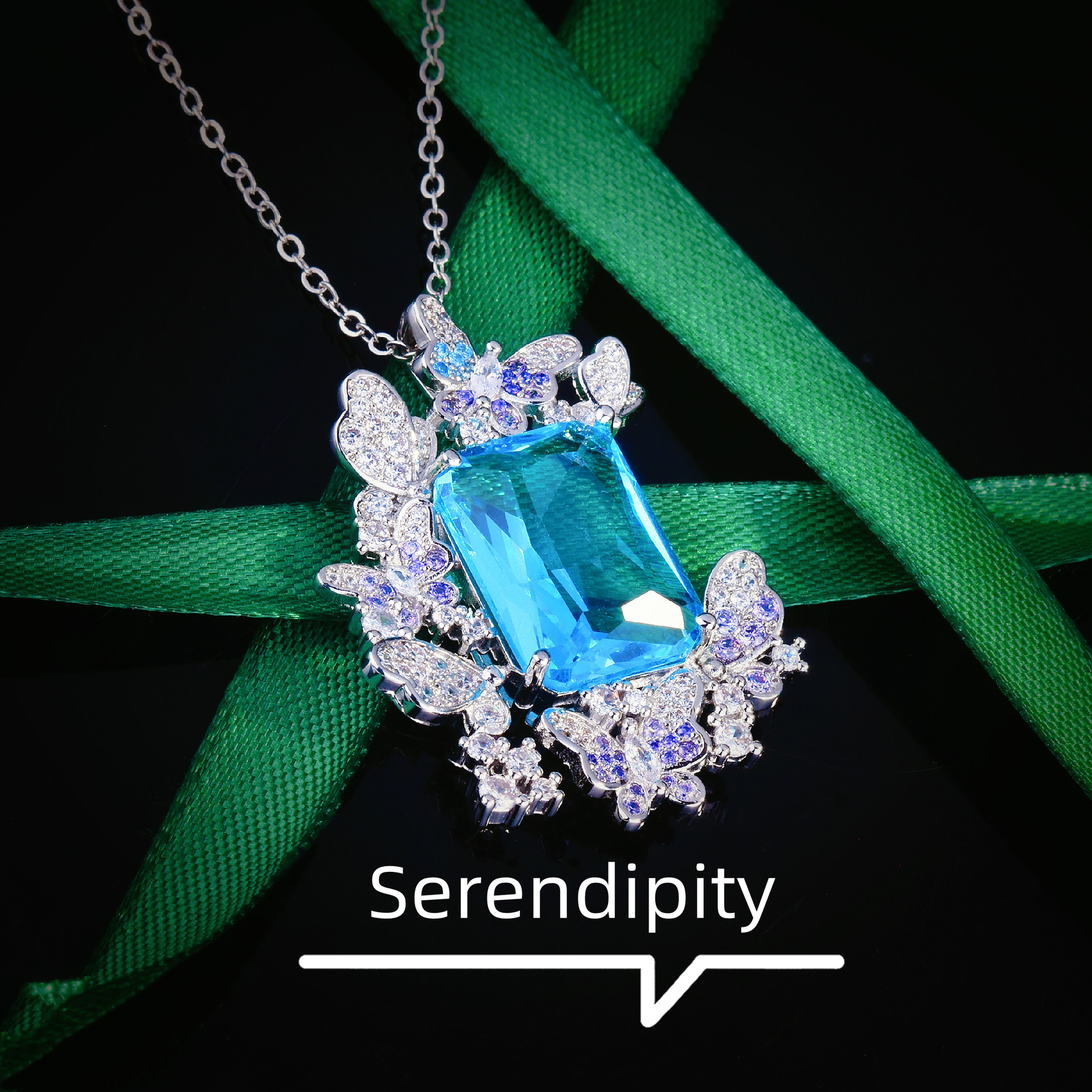 Product information:Color: Sea Blue Diamond Pendant [without chain]Material: CopperShape: Bow