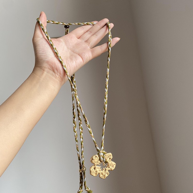 Color: gold hibiscus rose pendant necklace