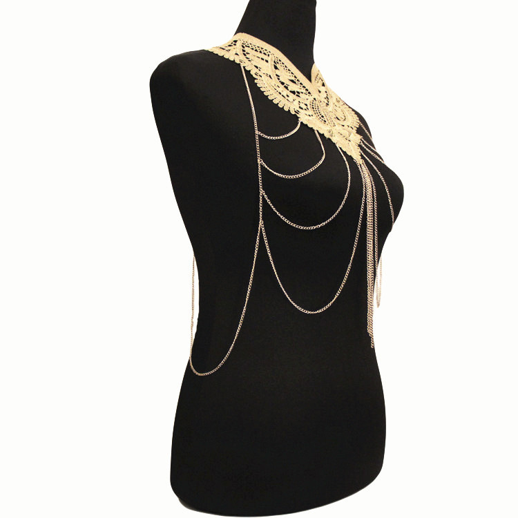 Gold Lace Fashion Exaggerated Necklace Multi-layer Tassel Body Chains