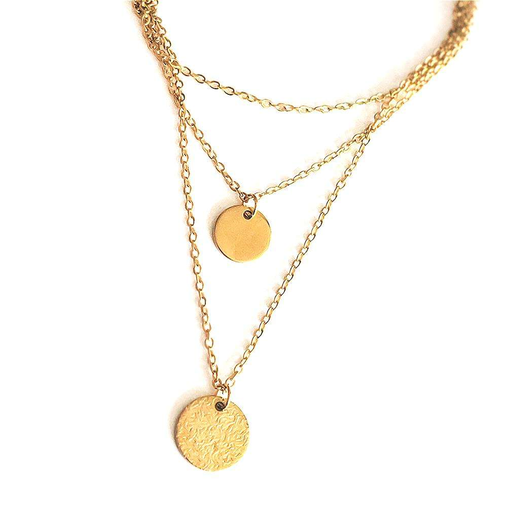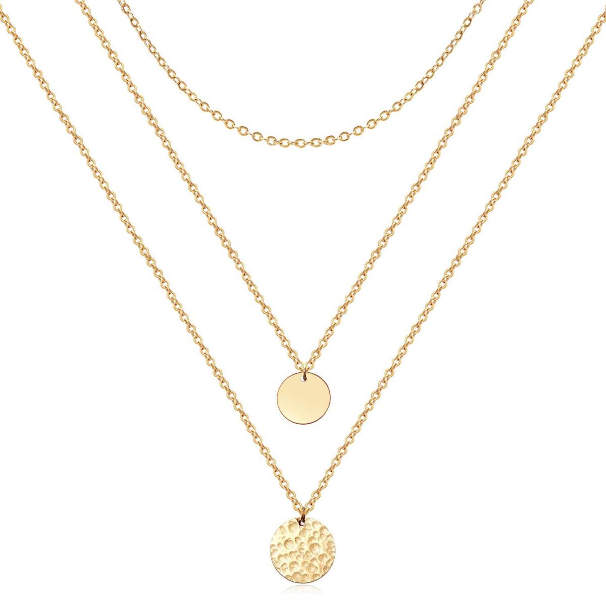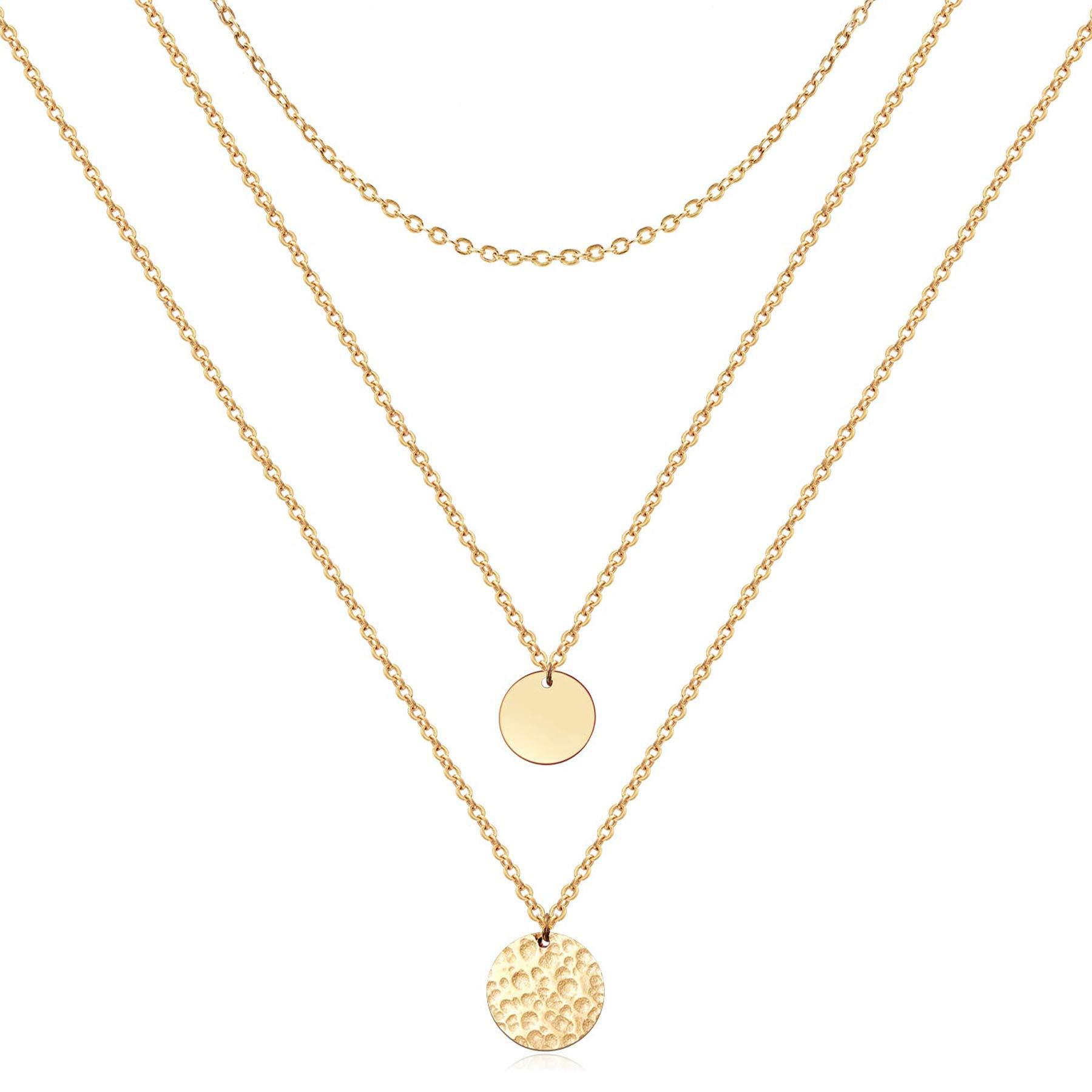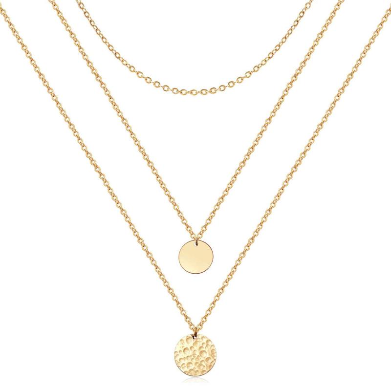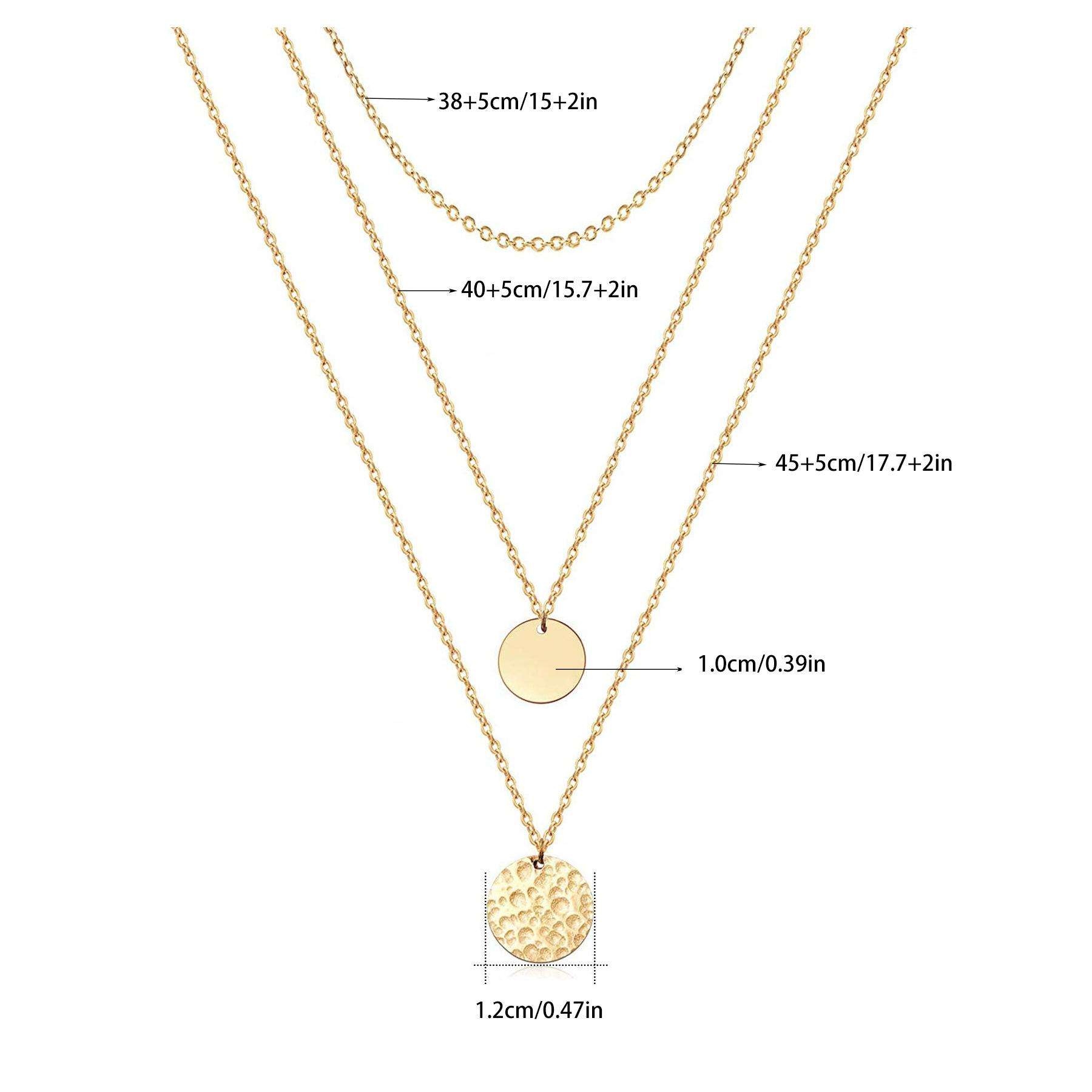 2.LAYERED NECKLACE MATERIAL--The layered necklace made of brass with 14k gold plated, Nickel Free,pretty layered necklace set, sparkly and dainty! delicate choker, personalized bar necklace and an elegant disc necklace!