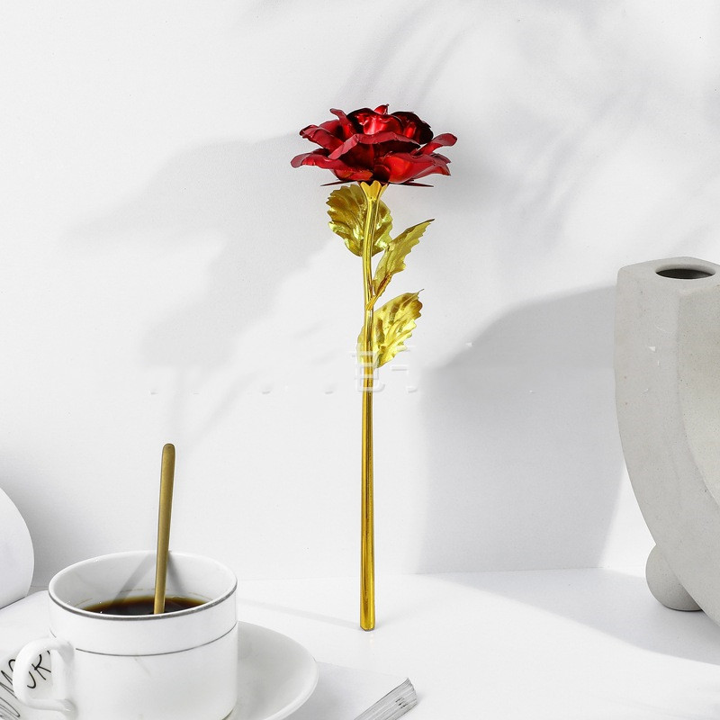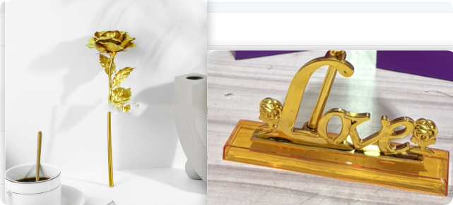 Material: The surface of the product is made of gold foil, the surface of the petals is a layer of craft gold foil [not gold], and the flower stem is plastic gold-plated. The product is a handicraft, the flower is very light, not easy to fold, and does not fade!