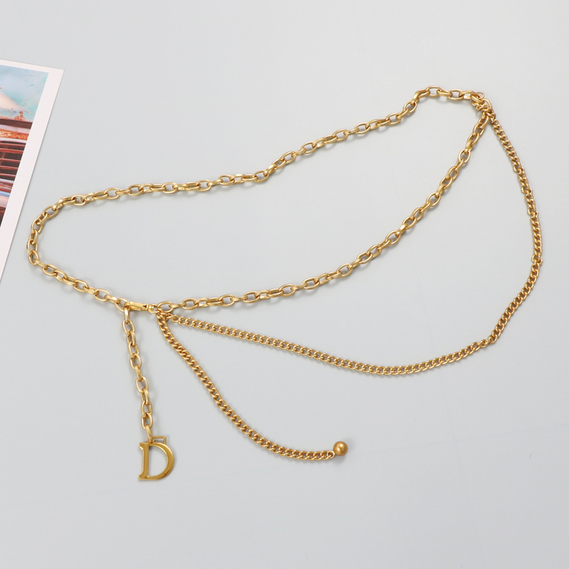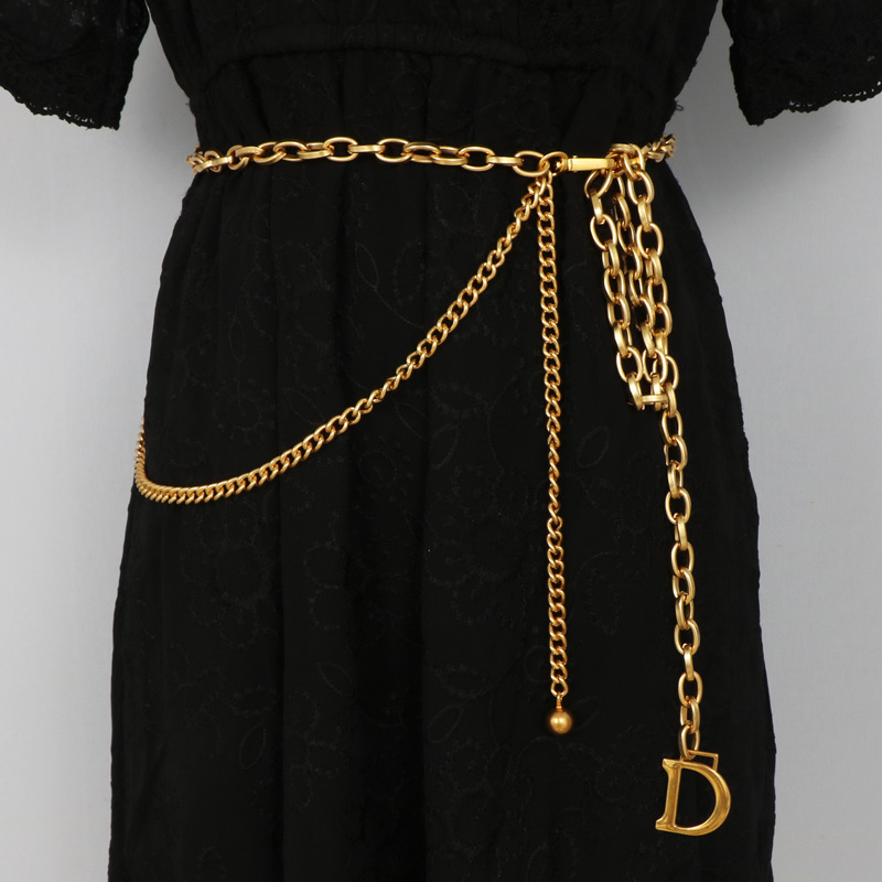 Gold Metal Thin Waist Chain Decoration With Shirt Dress Jeans
