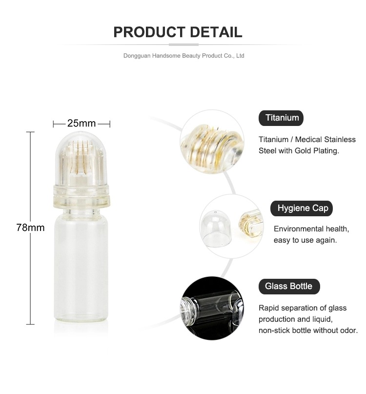 Hydra Roller can stimulate the production of collagen and increase the absorption of skin care products. But traditional top rollers are difficult to operate because you have to use your other hand or an assistant to help you get the essence. This new bottled hydration roller successfully combines the microneedles with the essence and automatically introduces them. No assistant is needed, and no need to go to the clinic for edema roller treatment, you can do it at home from now on! The needles of household microneedles are much smaller than the tools in the dermatologist's office, so they should not cause harm.