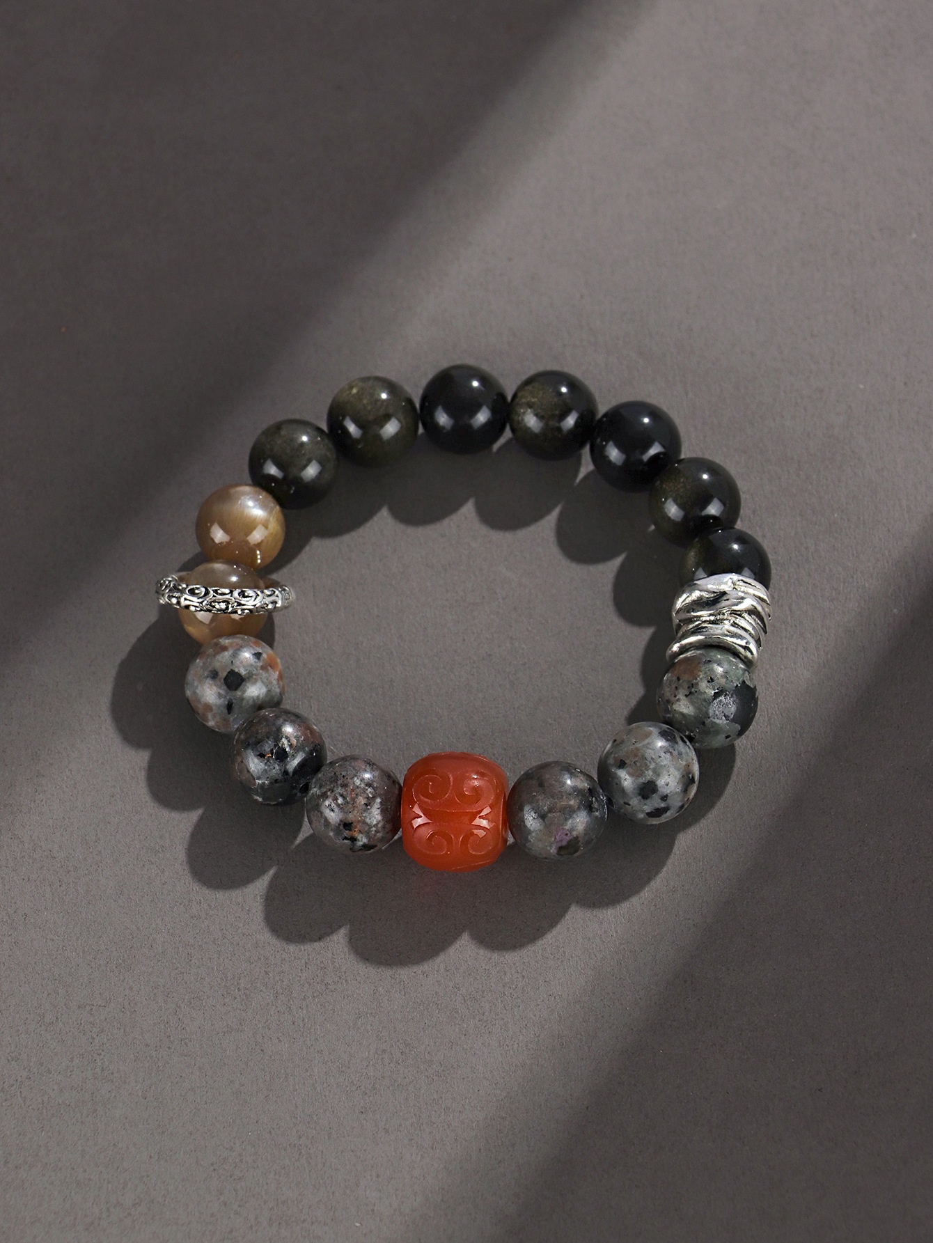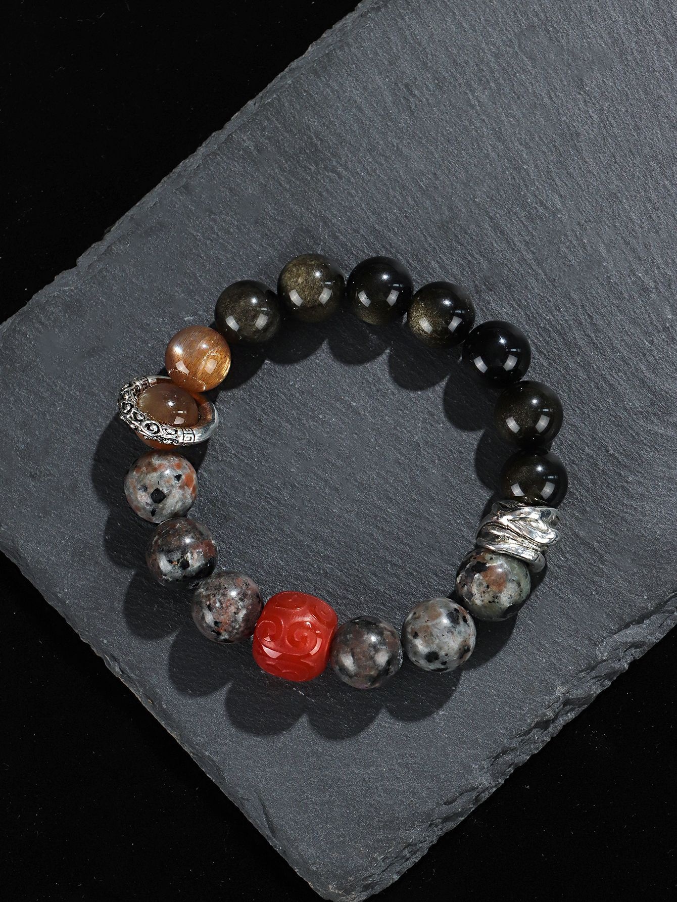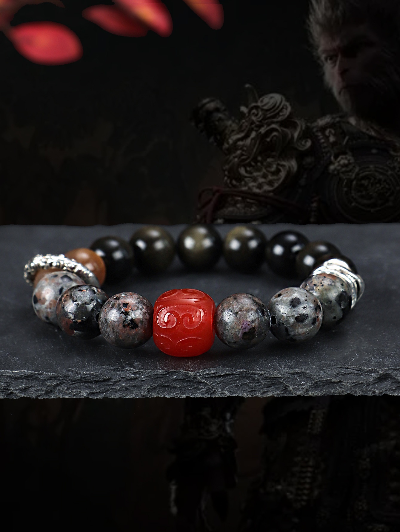 Color: gold obsidian flame stone red agate Wukong bracelet