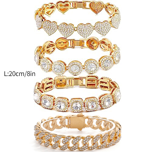Color: 4-piece gold and white diamond bracelet set, 4-piece silver and white diamond bracelet set, 4-piece silver and pink diamond set