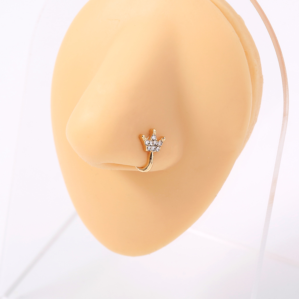 Gold rhinestone nose ring, mini crown rhinestone nose ring, piercing crown nose clip