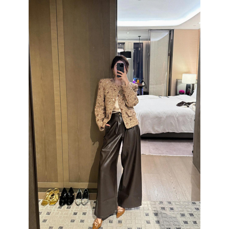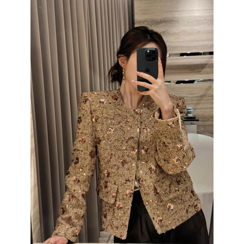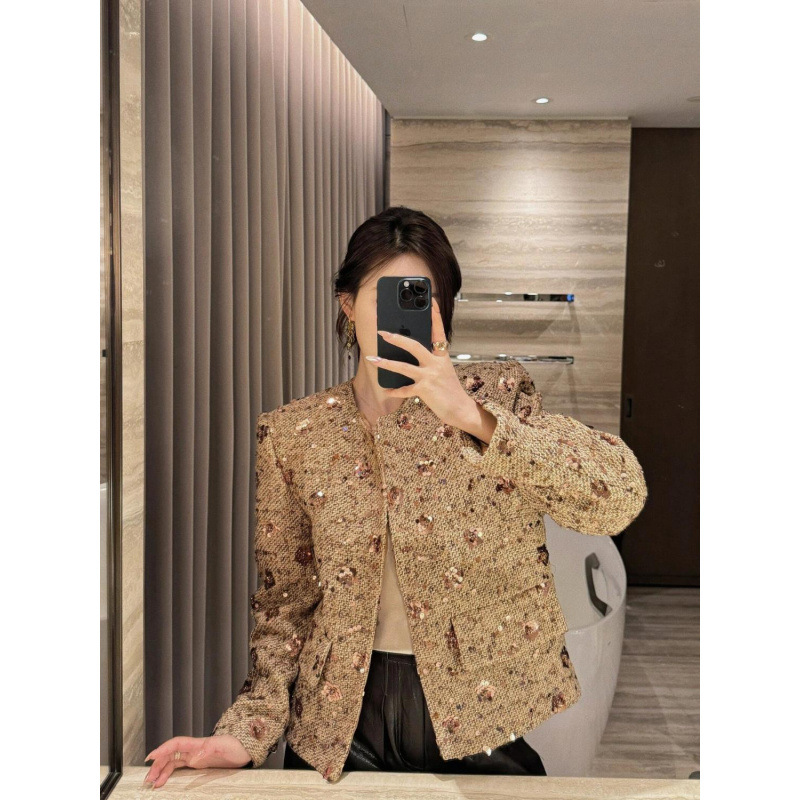 Gold Sequined Coat Tweed Padded Top