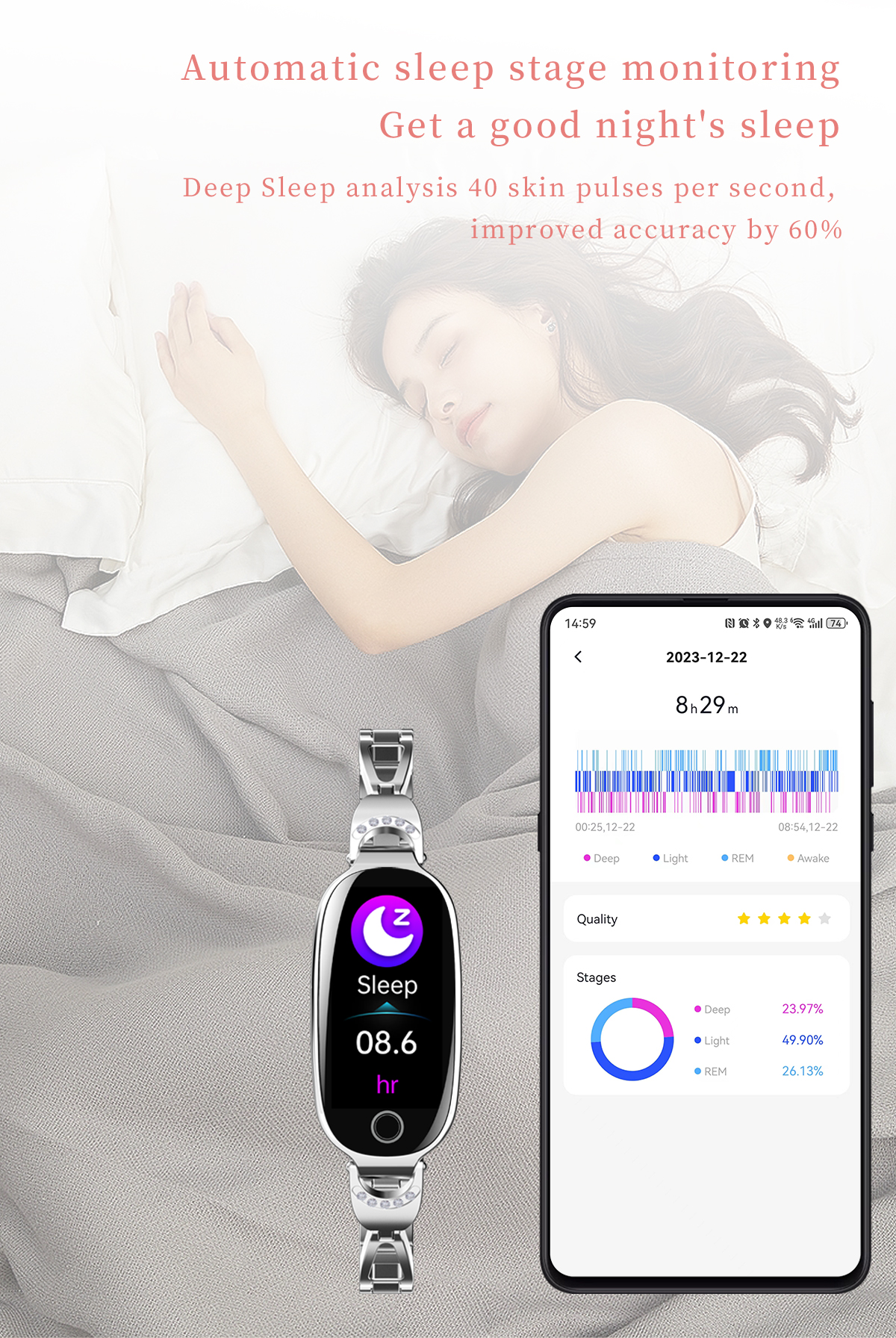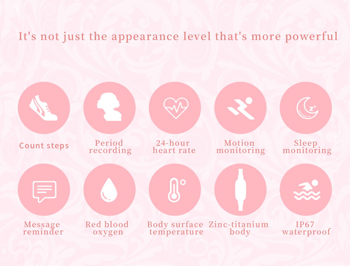 【Tailored for Women】 This ladies smartwatch with spherical tempered glass, exquisite appearance, and 1.1” HD color screen. The women smart watch is designed with female menstrual cycle function, reminds the calculated safe period and fertile period.