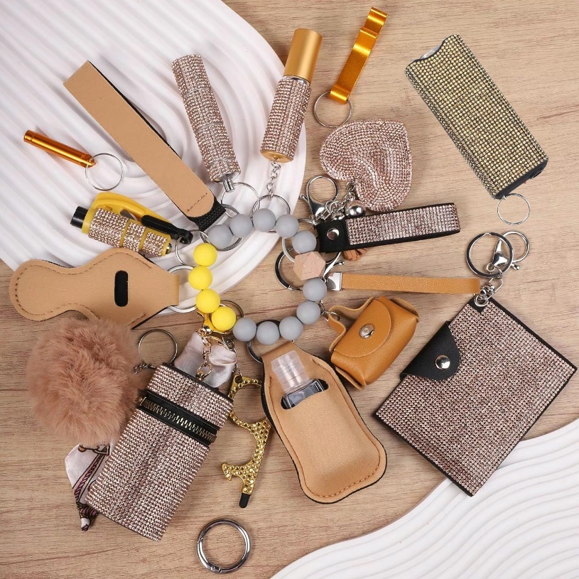 Gold Sparkling Diamond Multi-functional Keychain Set