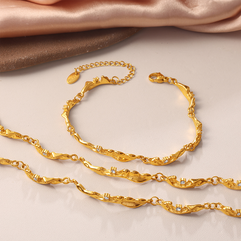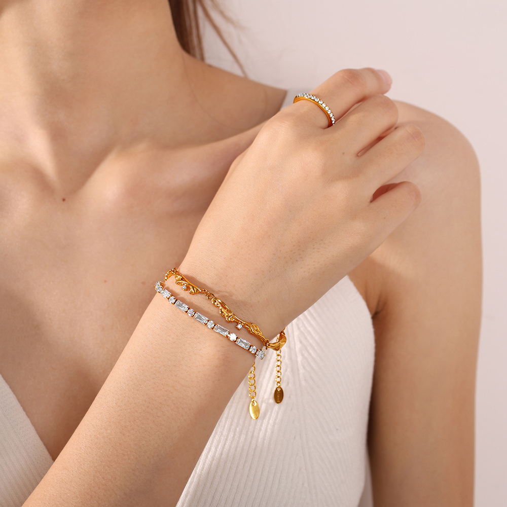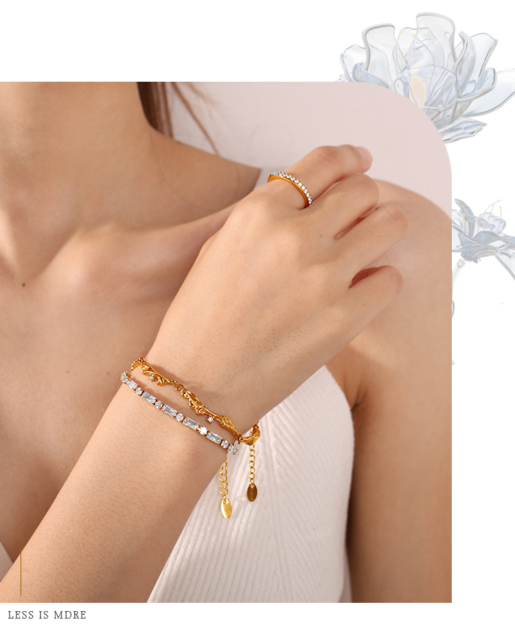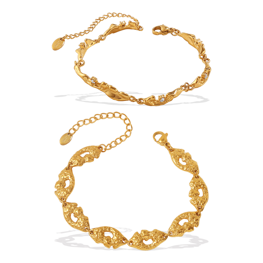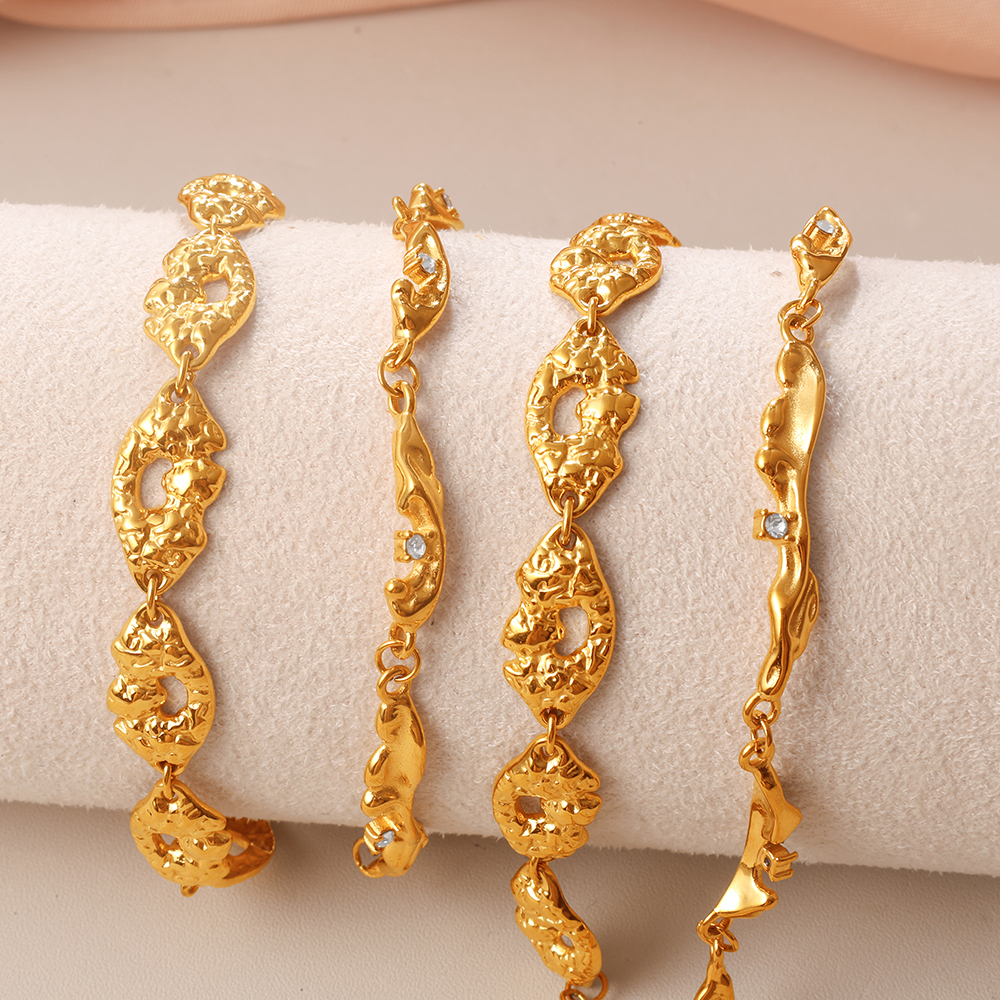 Gold Textured Openwork Bracelet, Vintage Style, Niche Design, Micro-diamond Decoration, Adjustable Bracelet