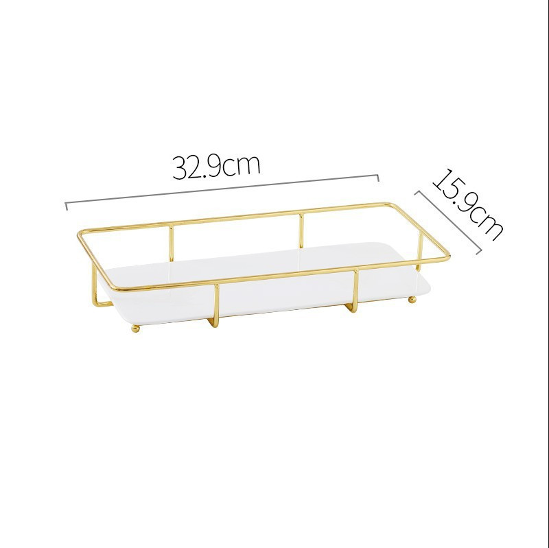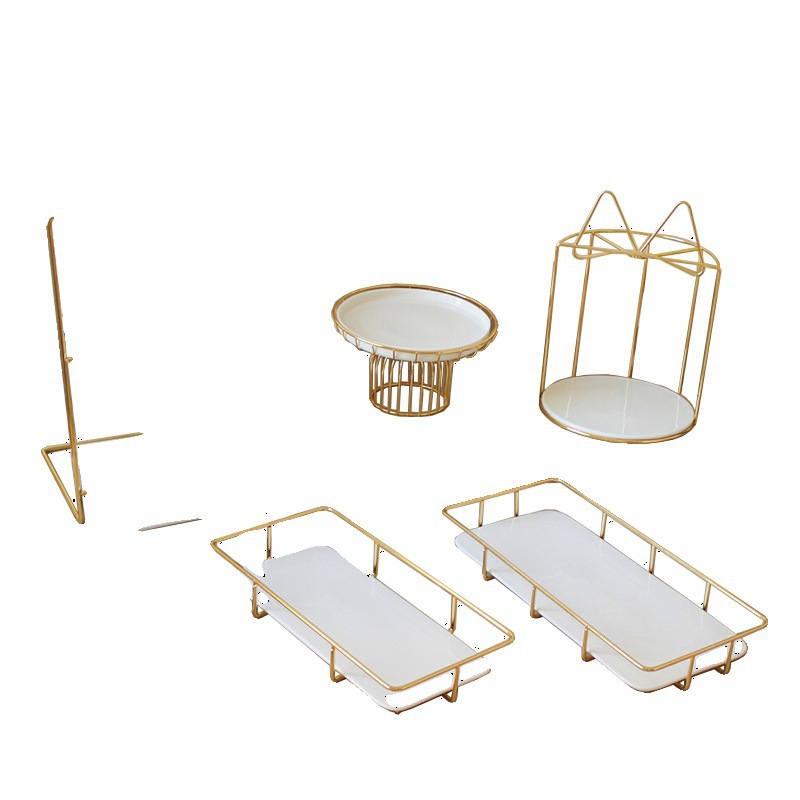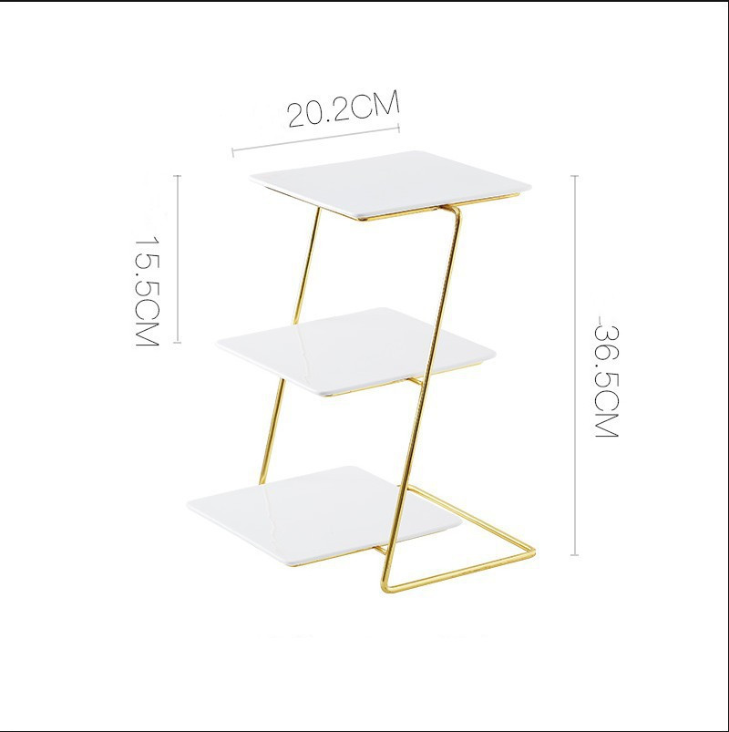 Golden Cake Stand Set, Three-layer Snack Stand, Ceramic High Plate
