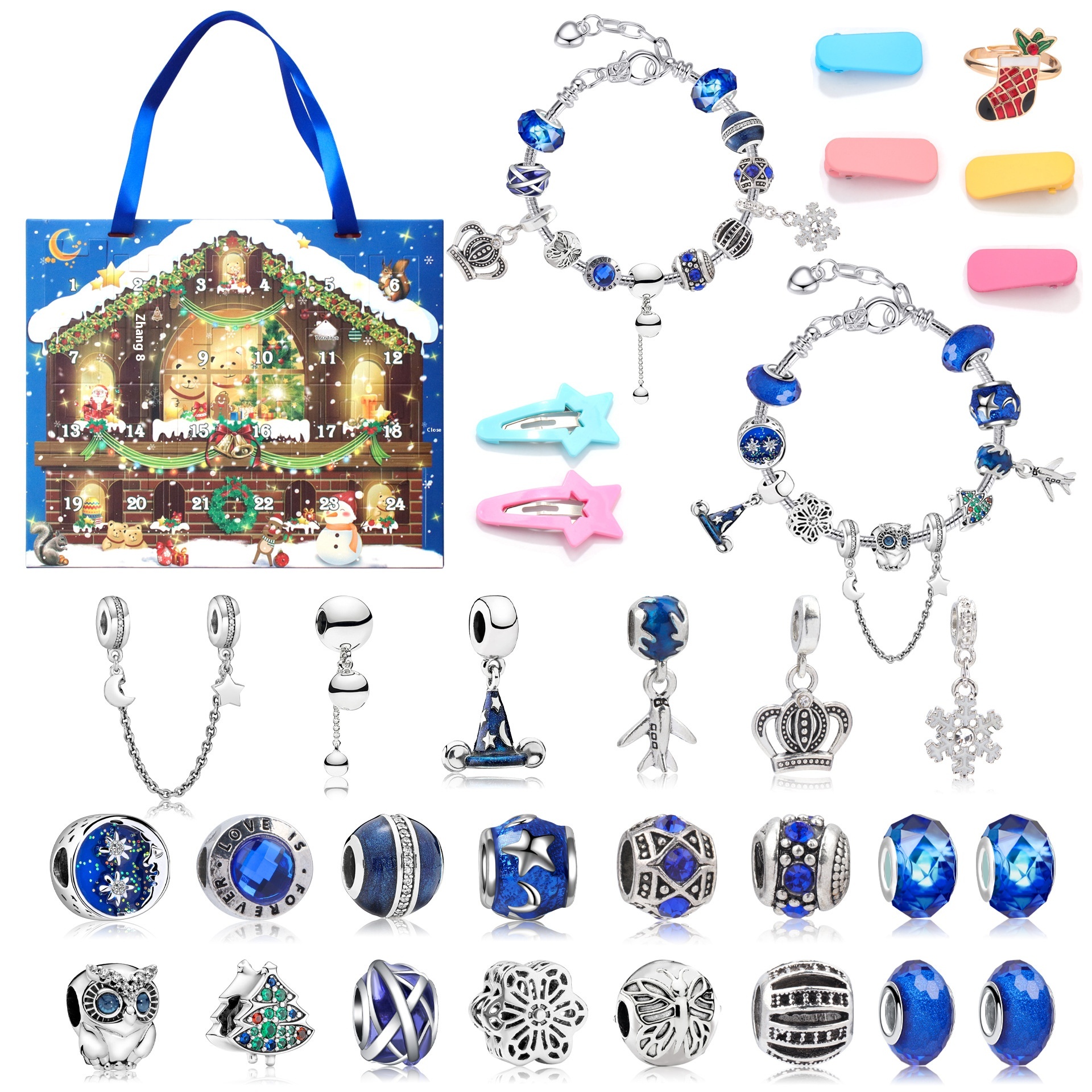 Color: M-28,M-27,M-26 (Santa Claus),M-25 (classic hot products),M-24 (new featured products),M-23 (new featured products),M-22,M-18,M-19,m-20,m-21,M-10,M-11,M-12,M-13,M-14ST,M-14H,M-14 Bell style, M-14 (Snowman style),M-14L,M-15 (random 2 barrettes 1 Christmas ring),m-16 (random 2 barrettes 1 Christmas ring),M-17ST,M-17L,M-17H, Jingle Bell, Christmas starry night, Christmas elk, Christmas Snowman Snowman style, Christmas tree, Dream Castle blind box, exotic ocean blind box