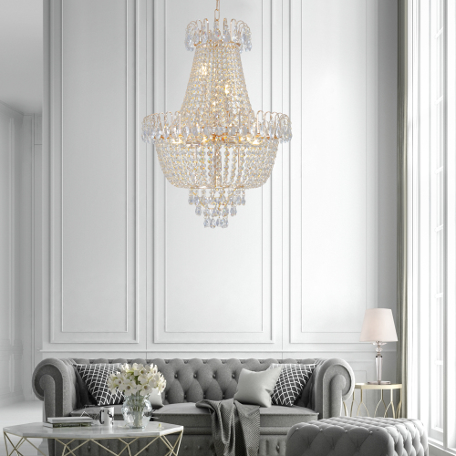 (same as W1340P143189) gold crystal chandelier, large modern luxury chandelier, suitable for living room, dining room, bedroom, corridor (no bulb)