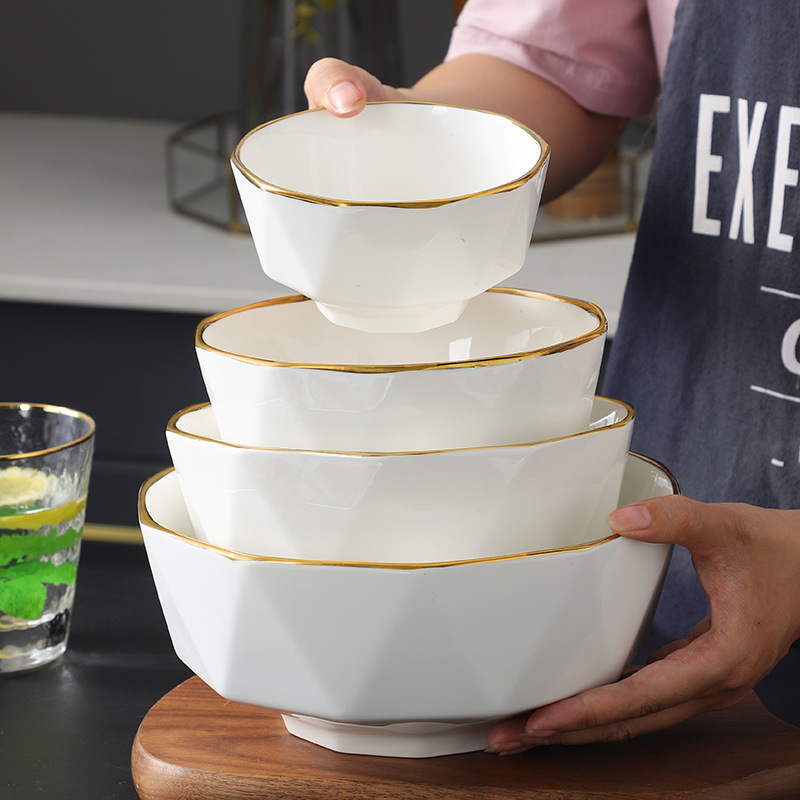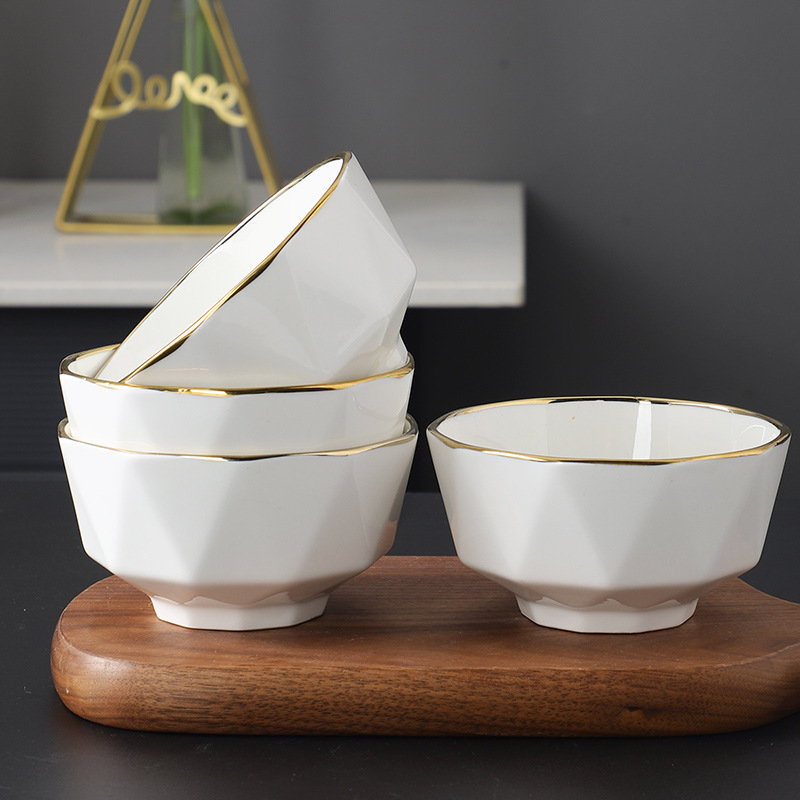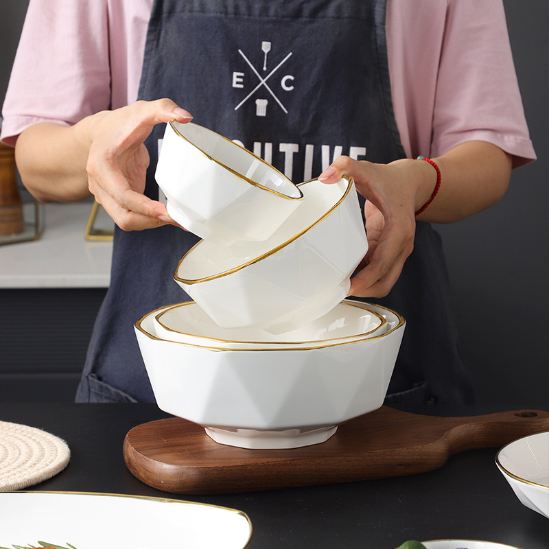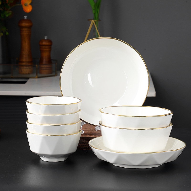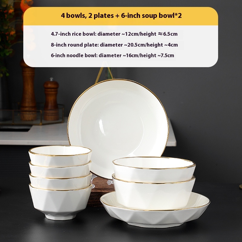 Product information:Color: gold silk-diamond 2 bowls 2 plates 6-inch soup bowl set set, Material: Ceramic