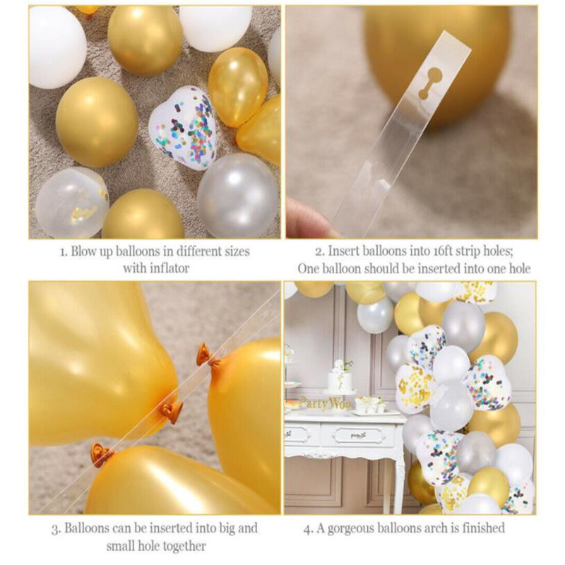 1 balloon chain, one glue dot, and one golden ribbon.