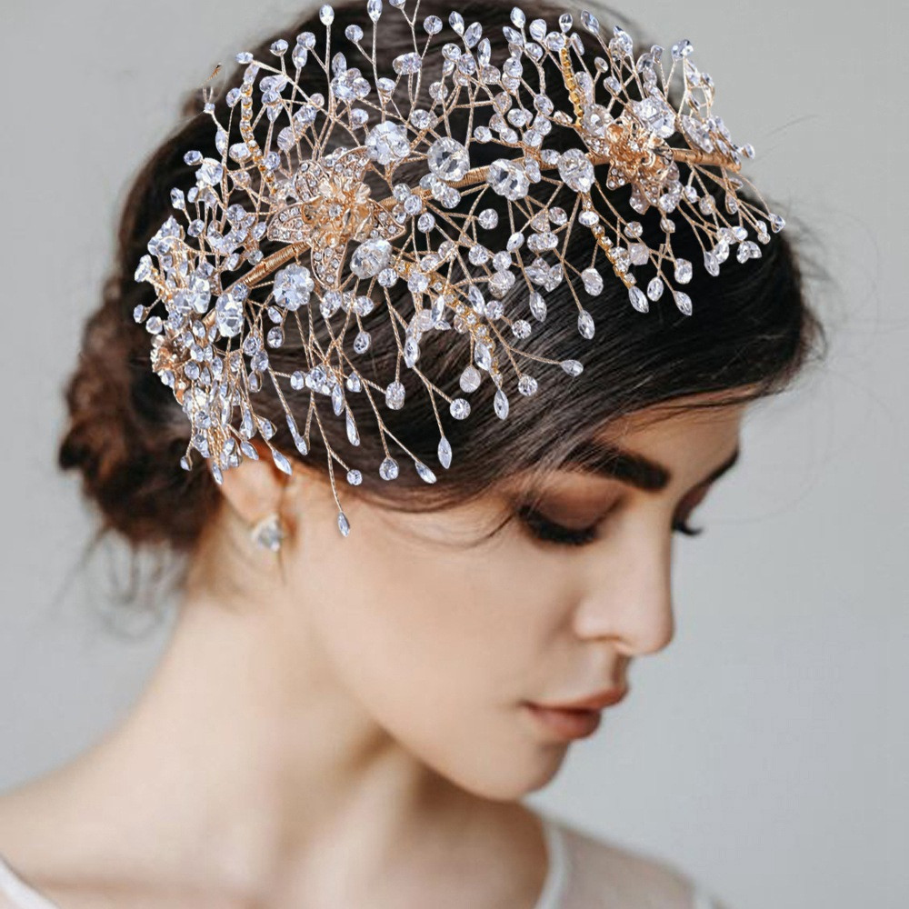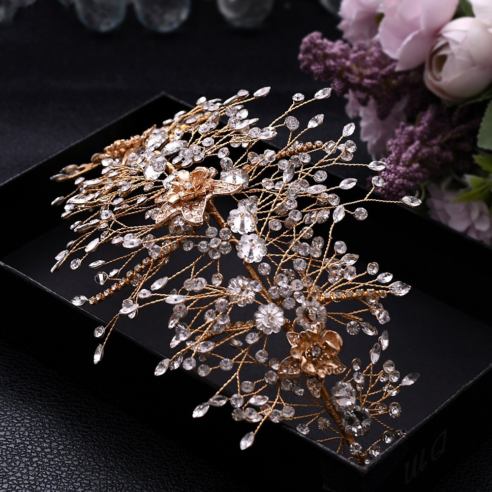 Golden Queen, Bridal Headdress, Exquisite Alloy Flower And Diamond Bridal Hair Accessories