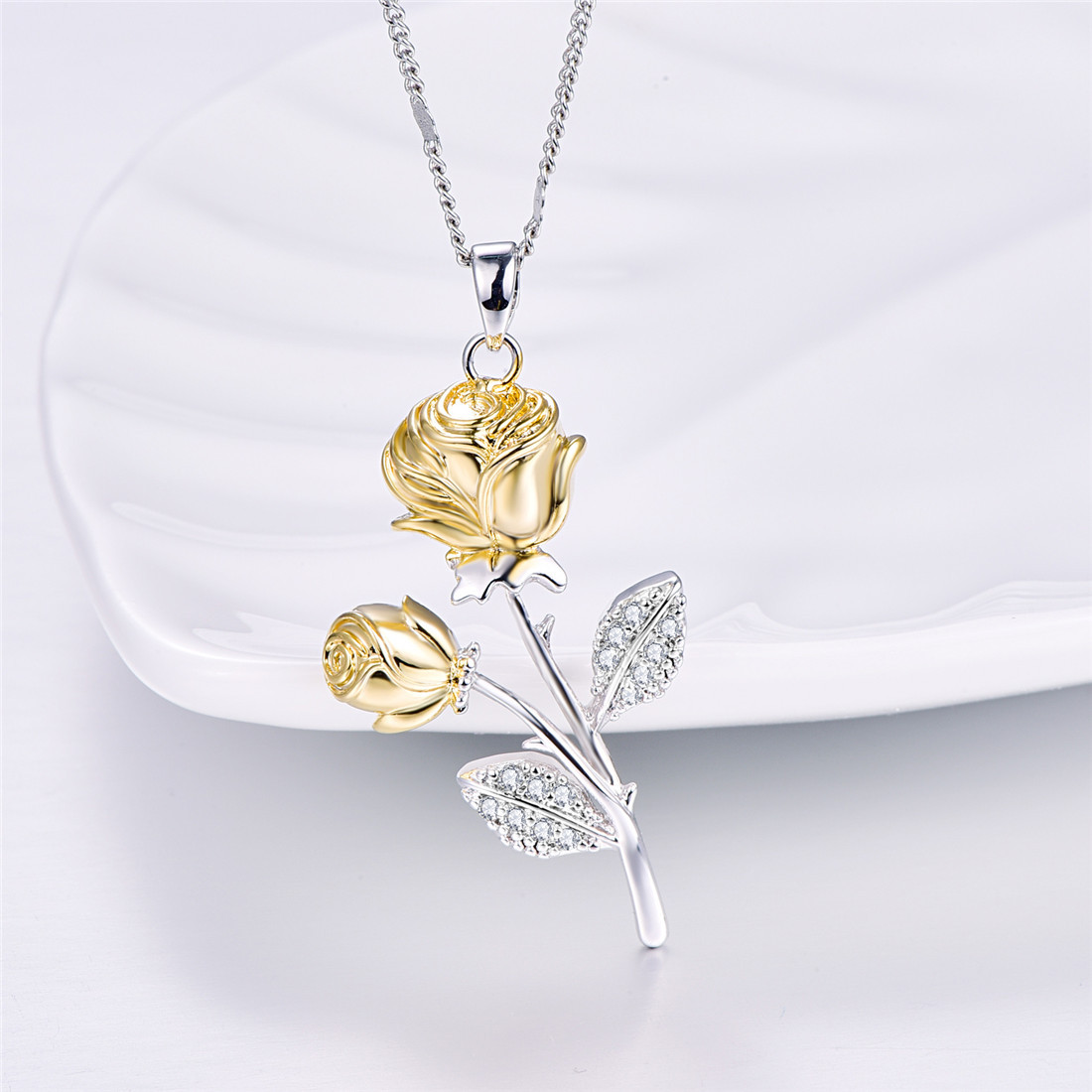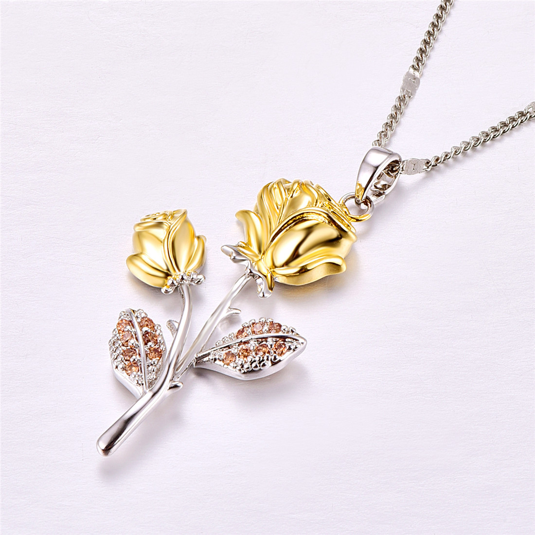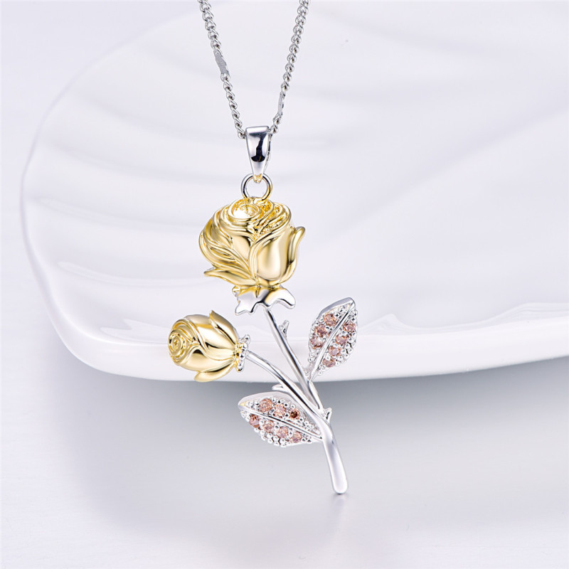 Golden Rose Flower Pendant Necklace