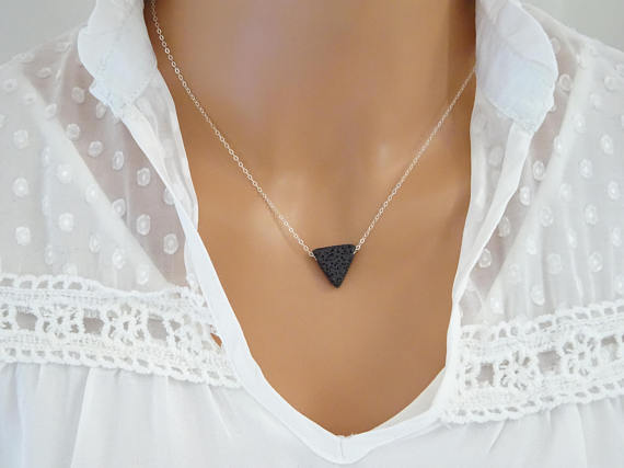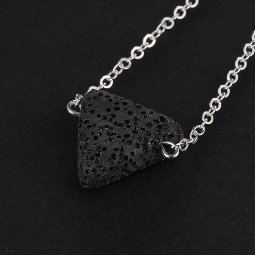 Golden Rose Gold Silver Chain Geometric Volcanic Stone Pendant Necklace