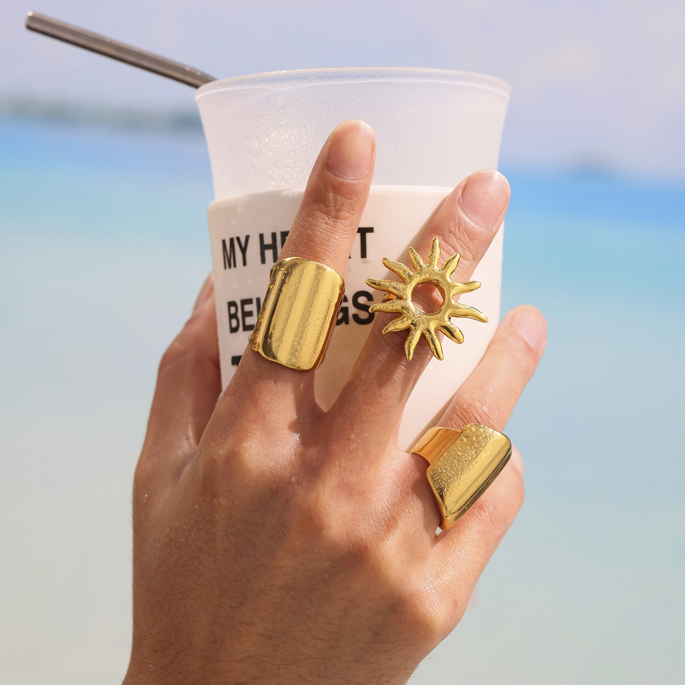 Color: A734-gold sunflower split ring, A734-steel sunflower split ring
