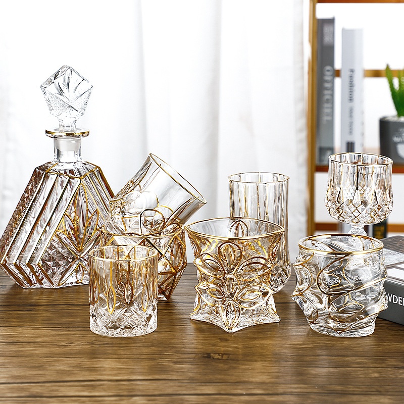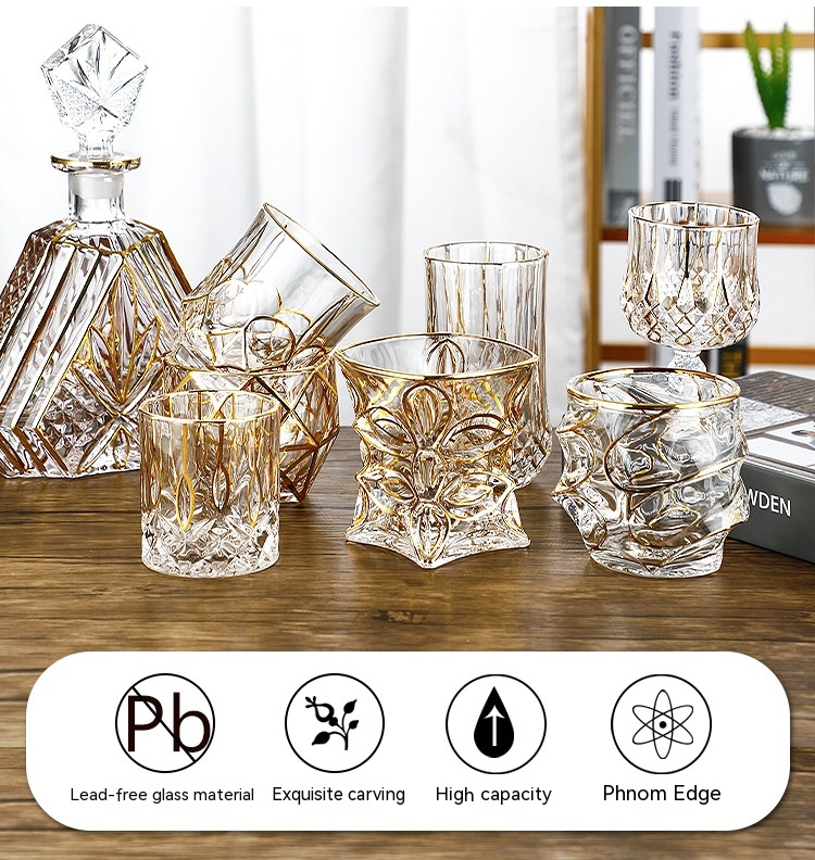 Golden Trim Gold Line Wine Glass Whiskey Decoration Cup