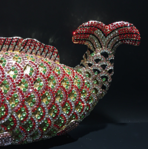 The hollow metal body is hand-inlaid with rhinestones, and the magnetic button switch!