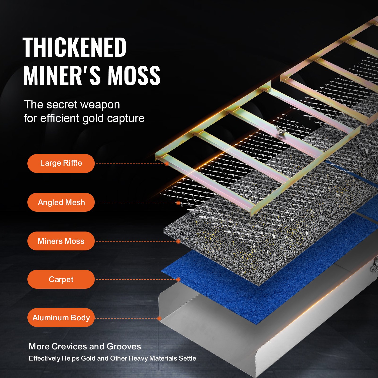 VEVOR Goldwaschpfanne Goldwannenbecken Set 22,86 x 127 cm Aluminium Goldpfanne für Goldwaschen Goldwannenbecken für Nugget Bergbau Wanne Gold Pan Sand Gold Bergbau Manuelle Goldwaschanlage Ausgräbt